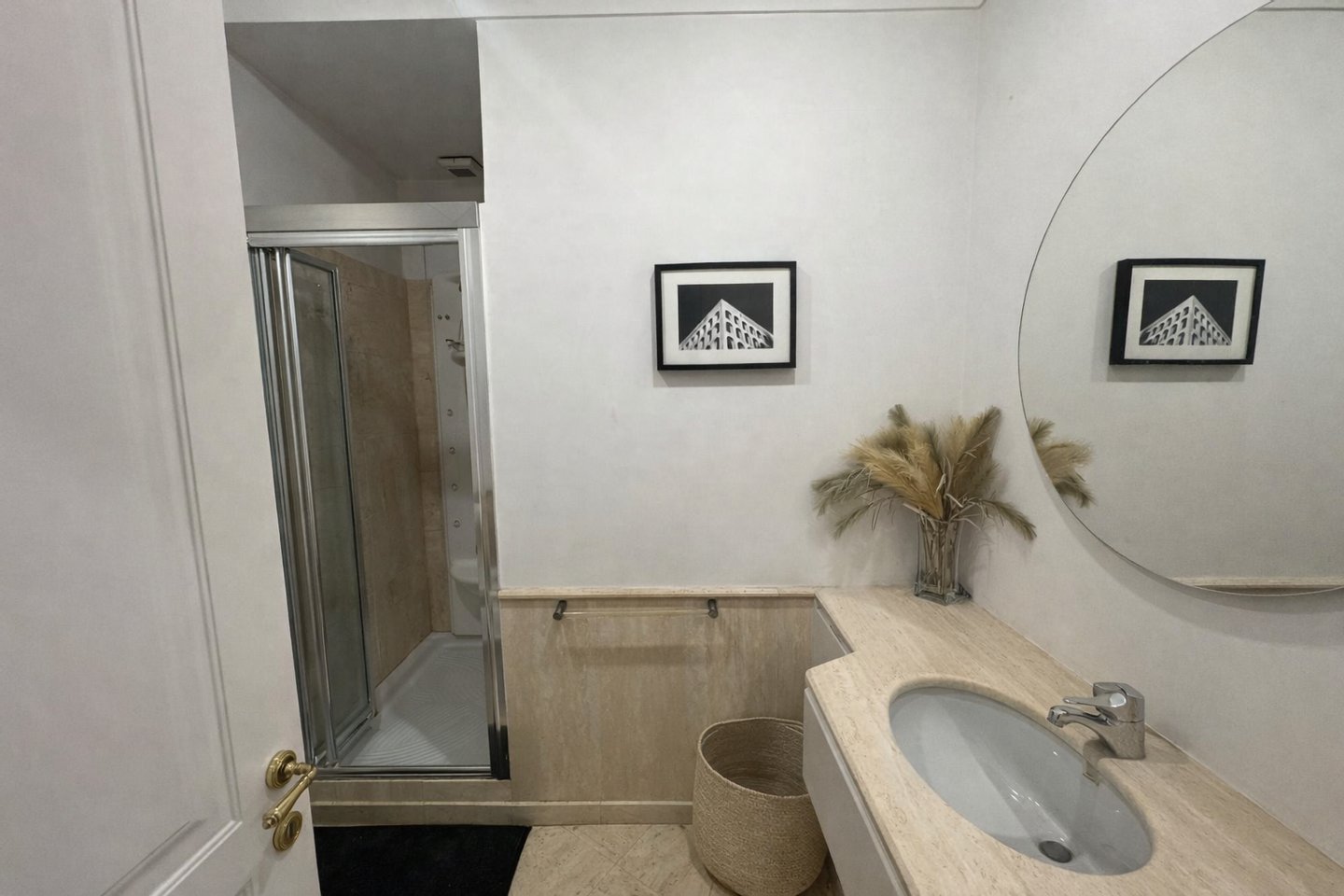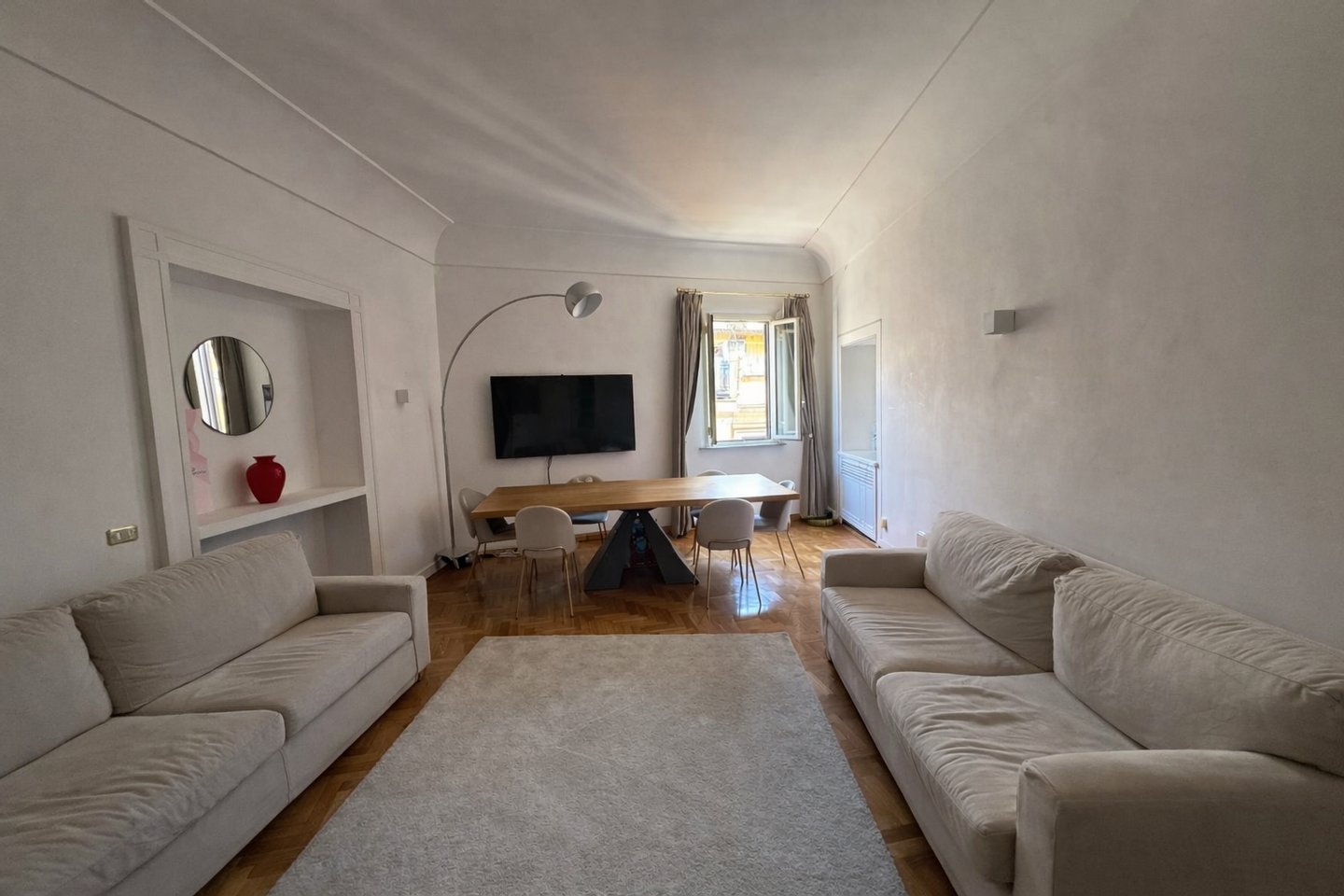 Das Grundstück mit 122 Quadratmetern öffnet sich zu einem großen und hellen Wohnzimmer, das harmonisch mit einem großen Speisesaal verbunden ist und eine einladende Umgebung schafft, die sich ideal für den Alltag und den Empfang von Gästen eignet. Das Esszimmer lässt sich dank seiner großzügigen Größe problemlos in ein zweites großes Doppelschlafzimmer umwandeln und bietet so eine beträchtliche Verteilungsflexibilität. Ein 3 m² großer Balkon vervollständigt das Anwesen und bietet einen angenehmen Blick auf die charakteristischen Dächer des historischen Zentrums.