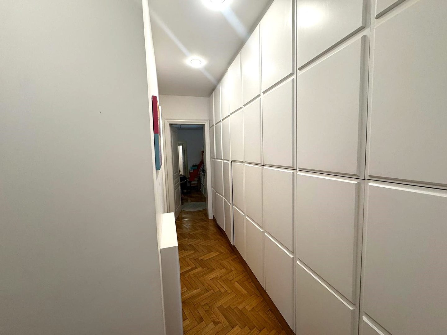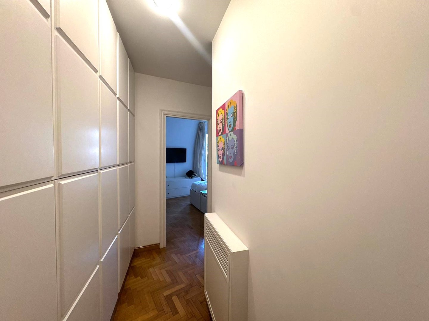 Die Wohnung befindet sich in gutem Instandhaltungszustand, mit Parkettboden in allen Räumen und eingebauten Kleiderschränken, die den Platz optimieren.