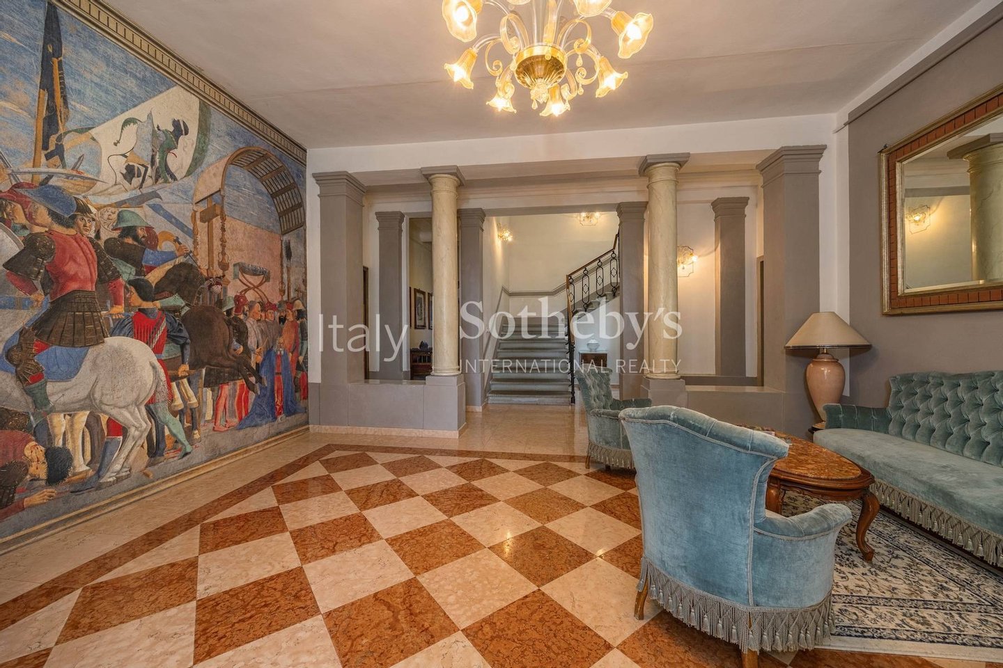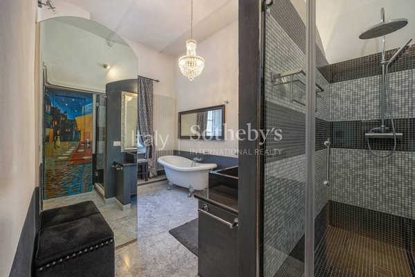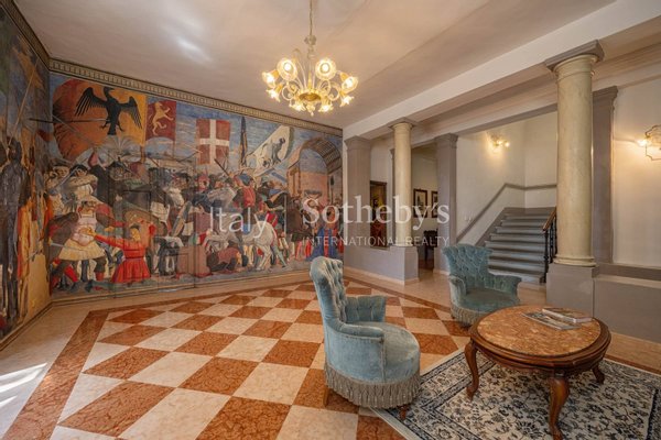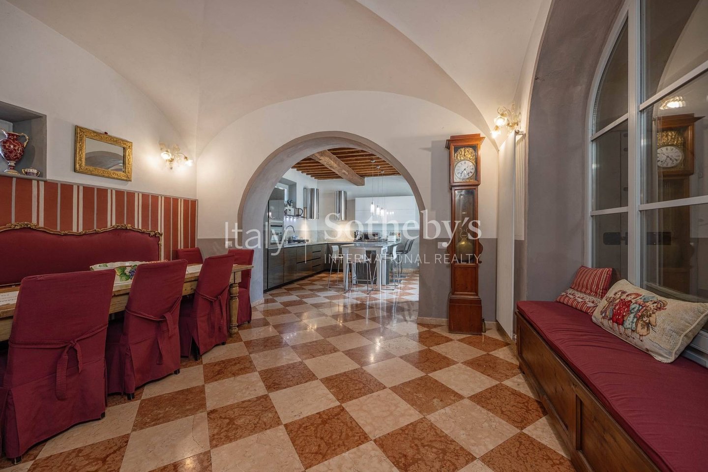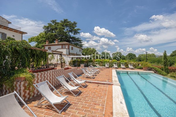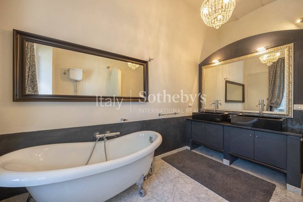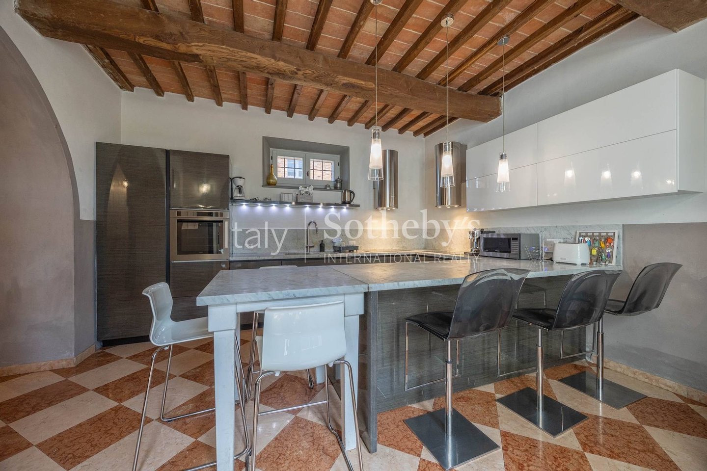 The main villa, measuring approximately 800 sqm, is arranged over several levels and retains original features such as wooden beams, terracotta floors, and period fireplaces. The interiors include a main reception room, dining room, Carrara marble kitchen, panoramic terrace, and a rooftop belvedere. The sleeping area offers 12 bedrooms and 7 bathrooms, along with additional spaces including a wardrobe room, cellar, laundry room, and a traditional wood-fired oven. The two annexes, each of approximately 200 sqm, provide further possibilities: one houses the caretaker's accommodation with living room, kitchen, two bedrooms, and a bathroom; the other is divided into two independent apartments of about 100 sqm each.