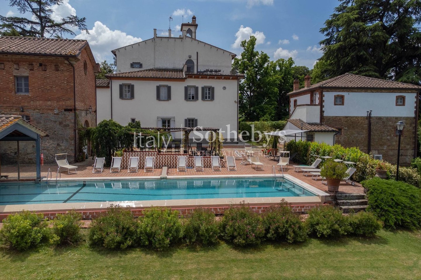 Located in the Tuscan countryside between Arezzo and Siena, this villa is a 16th-century residence set on a private hill, easily accessible.The property extends over approxi