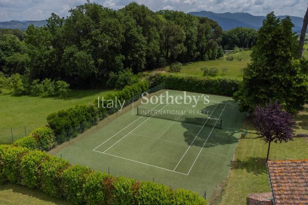 Externally, the property features a 25-meter heated swimming pool, tennis court, ample parking, and numerous centuries-old trees. The estate also includes an olive grove with over 200 trees, an orchard, and a vineyard of 1 hectare with Sangiovese, Merlot, Vermentino, and Chardonnay varieties, as well as a small production of table grapes.
