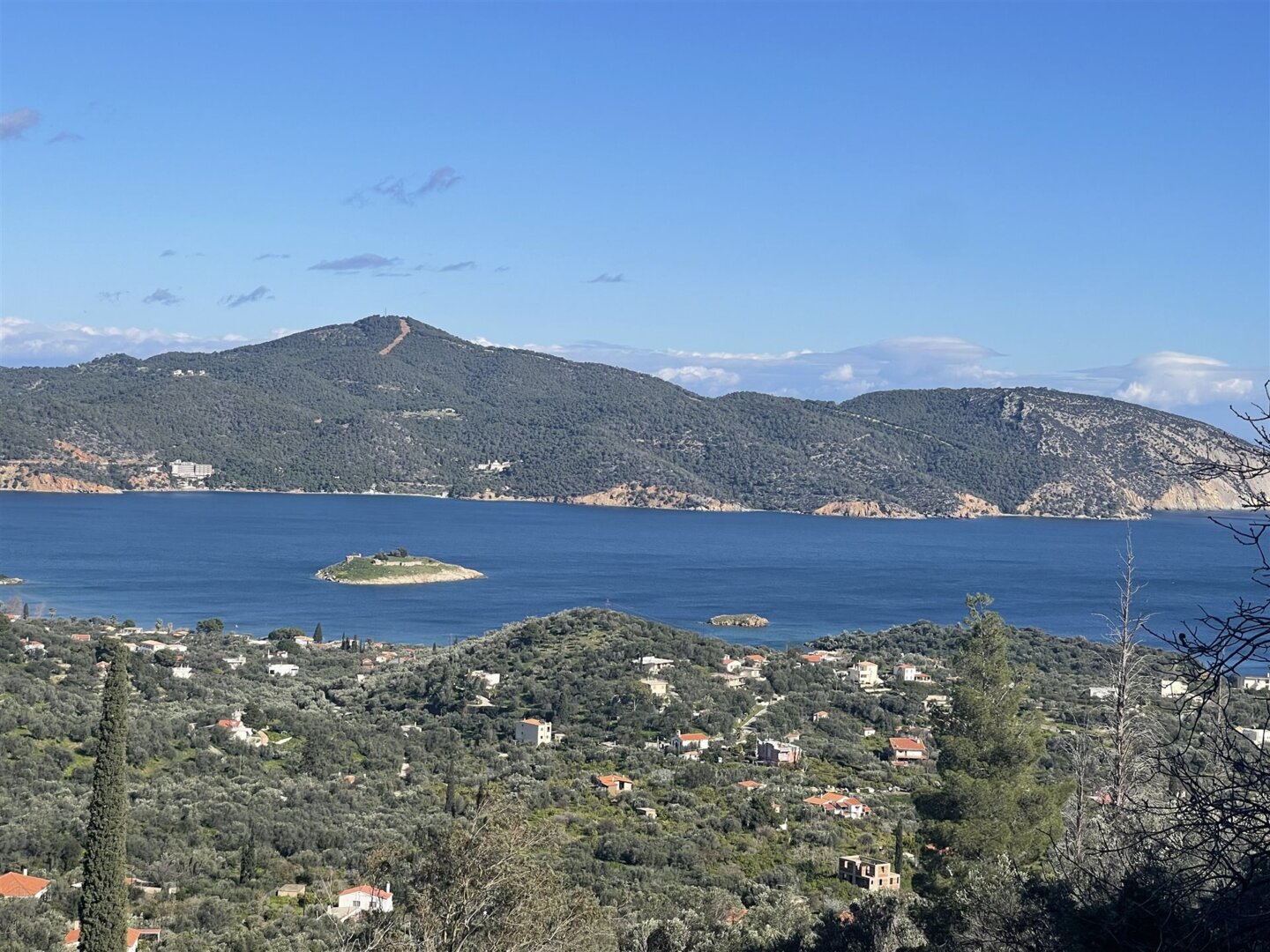 Zum Verkauf im Gebiet Poros – Peloponnes, exklusiv. Haus mit sensationellem Panoramablick auf das Meer, umgeben von ursprünglicher mediterraner Natur und alten Olivenbäumen. Das Haus ist 120 m² groß und besteht aus einem großzügigen Wohnbereich mit freiem Meerblick, Esszimmer mit schöner Meer- und Bergsicht, eingerichteter Küche, 2 Doppelzimmern und 1 Einzelzimmer, 1 Bad und 1 WC. Balkon-Terrasse, Lagerraum. Grundstück von 10.000 m² mit 200 Olivenbäumen, die 1,5 Tonnen natives Olivenöl pro Jahr liefern. Eigentümerbrunnen. Genügend Platz für Pool und Landschaftsgestaltung. Leichte Erreichbarkeit über eine asphaltierte Straße. 15 Minuten von der Stadt Galatas und der Insel Poros entfernt. Eine Auswahl von Stränden in 5 bis 10 Minuten Fahrt. Viele Ausflugsmöglichkeiten in kurzer Distanz, Hydra in 20 Minuten, Porto Cheli in 50 Minuten, Nafplio in 1 Stunde, Kurort Methana und Fischerdorf Vathy in 30 Minuten und vieles mehr. Nur 2,5 Stunden Fahrt vom Athener Internationalen Flughafen entfernt. Preis 550.000 Euro. Referenznummer #860.