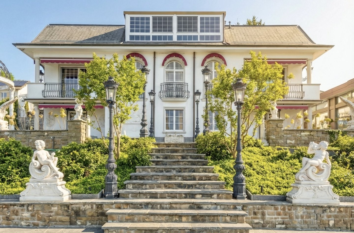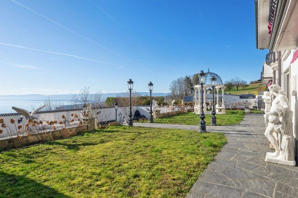 Der Außenbereich mit über 1.200 m² Fläche ist speziell für großflächige Veranstaltungen mit einem eigenen Grillbereich und Freizeitzonen konzipiert. Der Wellnessflügel verfügt über ein großzügiges Hallenbad und einen 8-Personen-Jacuzzi, der auf eine sonnenverwöhnte private Terrasse mit weitem Blick auf den See hinausgeht. Die Siedlung wird durch zwei vielseitige Anbauten weiter bereichert: ein unabhängiges Studio, ideal für Personal, eine Nanny oder einen Fahrer, sowie ein dediziertes professionelles Zentrum mit einer Waschküche und einer voll ausgestatteten professionellen Küche.