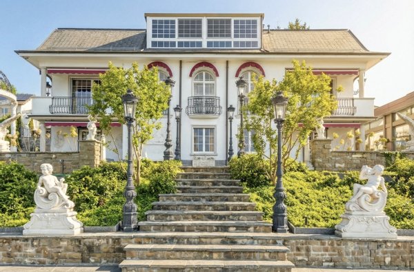 Hinter dem eleganten schmiedeeisernen Tor erstreckt sich das Anwesen über ein großzügiges Grundstück von 2.800 m², das von einem eigenen Privatwald begrenzt wird, der das Gefühl von Exklusivität und Verbindung zur Natur verstärkt. In dieser üppigen Umgebung schafft ein mit verschiedenen Obstbäumen bepflanzter Bereich eine charmante Obstgartenatmosphäre, die den Eindruck einer