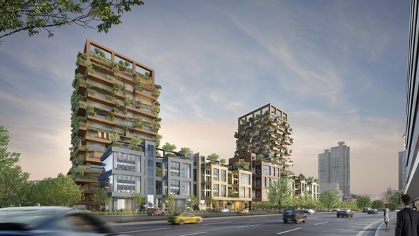 - 1 Bürogebäude + 2 Wohntürme (jeweils 15 Stockwerke)