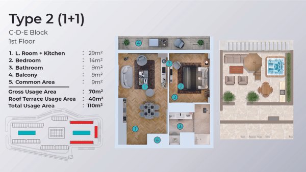 1-Schlafzimmer-Apartments (1+1) – Ideal für komfortables Wohnen am Meer