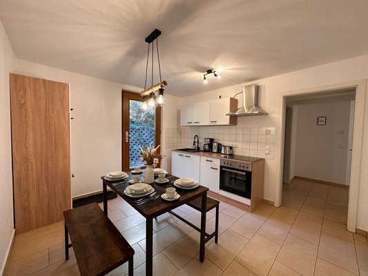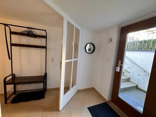 Die Wohnung verfügt über einen separaten Eingang und bietet Terrasse, Garten und Stellplatz direkt am Haus.