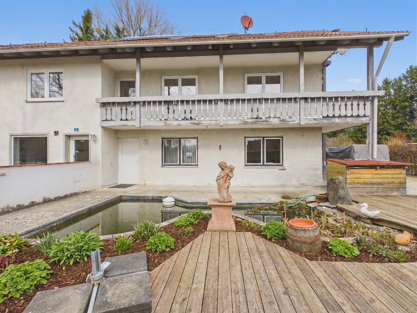 – Großzügige Holzterrasse mit idyllischem Koiteich
