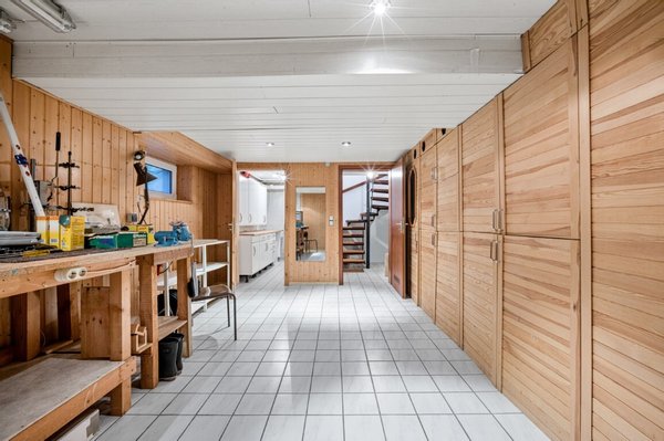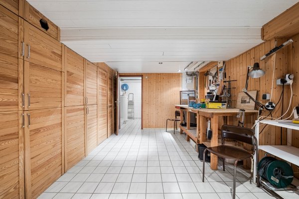 Der Teilkeller mit ca. 43 m² bietet zusätzliche Nutzfläche und ist praktisch aufgeteilt in Heizungsraum, Werkstatt, Waschküche sowie weitere Lagerflächen. Beheizt wird das Haus über eine Gasheizung aus dem Jahr 2002.