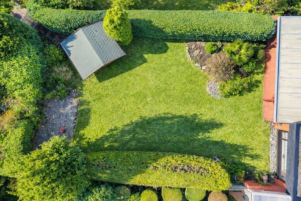 Die Holzfenster sind überwiegend mit Rollläden ausgestattet, die teilweise elektrisch betrieben werden. Eine Garage sorgt für komfortables und sicheres Parken direkt am Haus. Ergänzend befindet sich im Garten ein praktisches Gartenhaus, das zusätzlichen Stauraum für Gartengeräte oder Freizeitutensilien bietet.