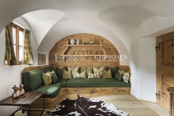 Vom Eingang aus gelangt man in den großzügigen und einladenden Wohnbereich, der zwei Lounges, eine typische Ampezzaner Stube und eine voll ausgestattete, hochmoderne Küche umfasst.