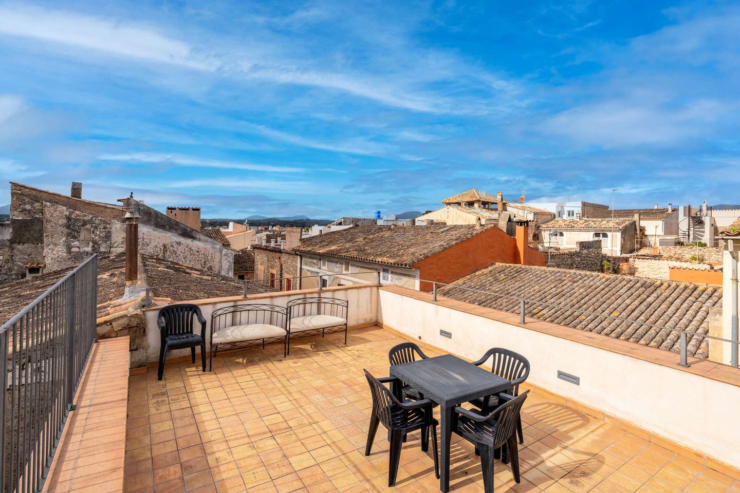 In den oberen Etagen verteilen sich insgesamt fünf Doppelzimmer sowie eine großzügige Suite, alle mit eigenem Bad und Ankleidebereich. Eine große Dachterrasse bietet einen schönen Blick über die Dächer von Artà bis hin zum Castell de Sant Salvador.