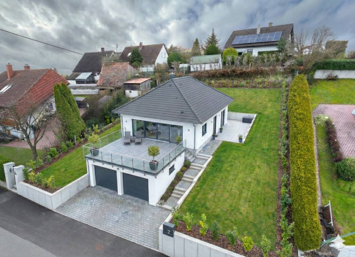 - Freiflächen: Auf dem Garagendach lässt sich eine Terrasse auf Erdgeschossniveau realisieren – Ihr privater Logenplatz über dem Tal.