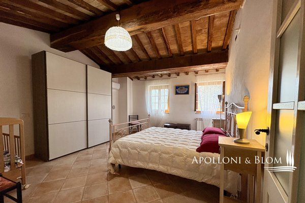 In einem mittelalterlichen Weiler gelegenes Steinhaus mit zwei Nebengebäuden, rustikalem Weinkeller und Garten, zu verkaufen in der Nähe von San Gimignano. Eine malerische, von Zypressen gesäumte Allee führt zu diesem bezaubernden mittelalterlichen Weiler in der sanften sienesischen Landschaft, in einer herrlichen Lage zwischen Siena und Florenz, wo Olivenhaine und Wälder die Landschaft in zeitloser toskanischer Harmonie umrahmen. Der Weiler geht auf das 10. Jahrhundert zurück und bewahrt das Schloss und eine kleine Kirche aus dem Jahr 1200. Am Rande des Weilers bieten wir ein ca. 243 Quadratmeter großes Grundstück mit drei Steinhäusern in einem privaten Garten zum Verkauf an. In der Mitte befindet sich eine sorgfältig restaurierte Scheune aus dem Jahr 1900 mit 115 Quadratmetern auf zwei Ebenen und einem 70 Quadratmeter großen Keller aus Tuffstein. Bei der im Jahr 2000 sorgfältig durchgeführten Restaurierung wurden die Balken aus Kastanienholz, die Terrakottaböden und die Backsteinbögen erhalten und mit modernen Annehmlichkeiten wie einer Klimaanlage kombiniert. Im Erdgeschoss gelangt man von einer mit Terrakottafliesen gepflasterten Terrasse in ein offenes Wohnzimmer, in dem ein zentraler Ziegelbogen die Küche und die Sitzecke mit Kamin abgrenzt. Im Obergeschoss befinden sich zwei Schlafzimmer und ein Bad. Die Einbauten sind aus Massivholz mit Doppelverglasung, Moskitonetzen und schmiedeeisernen Sicherheitsvorrichtungen. In der unteren Etage, die vom Garten aus zugänglich ist, befindet sich der alte, in den Tuffstein gegrabene Weinkeller, in dem noch originale Elemente zu sehen sind, darunter der Mühlstein, der einst von Eseln geschoben wurde, und historische Geräte, die bei der Herstellung von Olivenöl und Wein verwendet wurden. Neben dem Eingang zum Weinkeller wurde eine 32 Quadratmeter große ehemalige Steinscheune mit zwei Gästezimmern restauriert. Das dritte Gebäude, eine 16 Quadratmeter große Hütte, muss noch umgestaltet werden und bietet hervorragende Möglichkeiten als Atelier, Werkstatt oder Gästebereich. Strategisch günstig gelegen zwischen San Gimignano und Colle Val d'Elsa, nur wenige Minuten von der alten Straße nach Volterra entfernt.