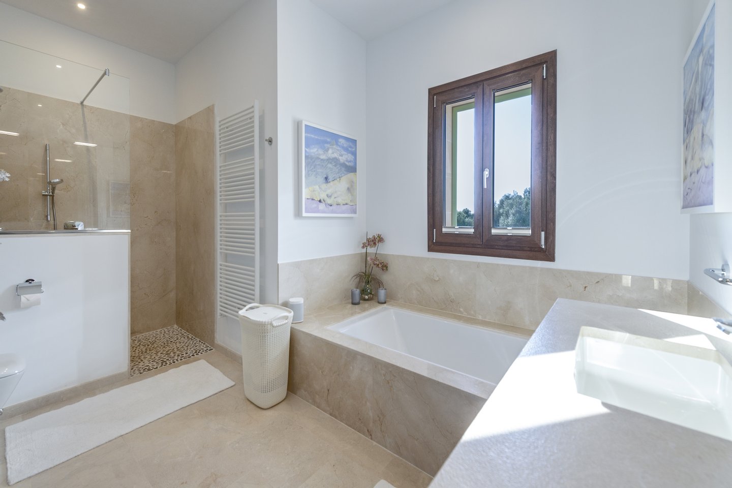 Die 2021 fertiggestellte Finca bietet ca. 350 qm Wohnfläche auf zwei Ebenen und überzeugt durch klare Architektur, großzügige Raumhöhen und hochwertige Materialien. Der lichtdurchflutete Wohn- und Essbereich mit Kamin bildet das Herzstück des Hauses und geht fließend in die offen gestaltete Küche über. Vier Schlafzimmer mit eleganten Bädern en Suite, darunter eine exklusive Master-Suite im Obergeschoss, bieten höchsten Wohnkomfort.