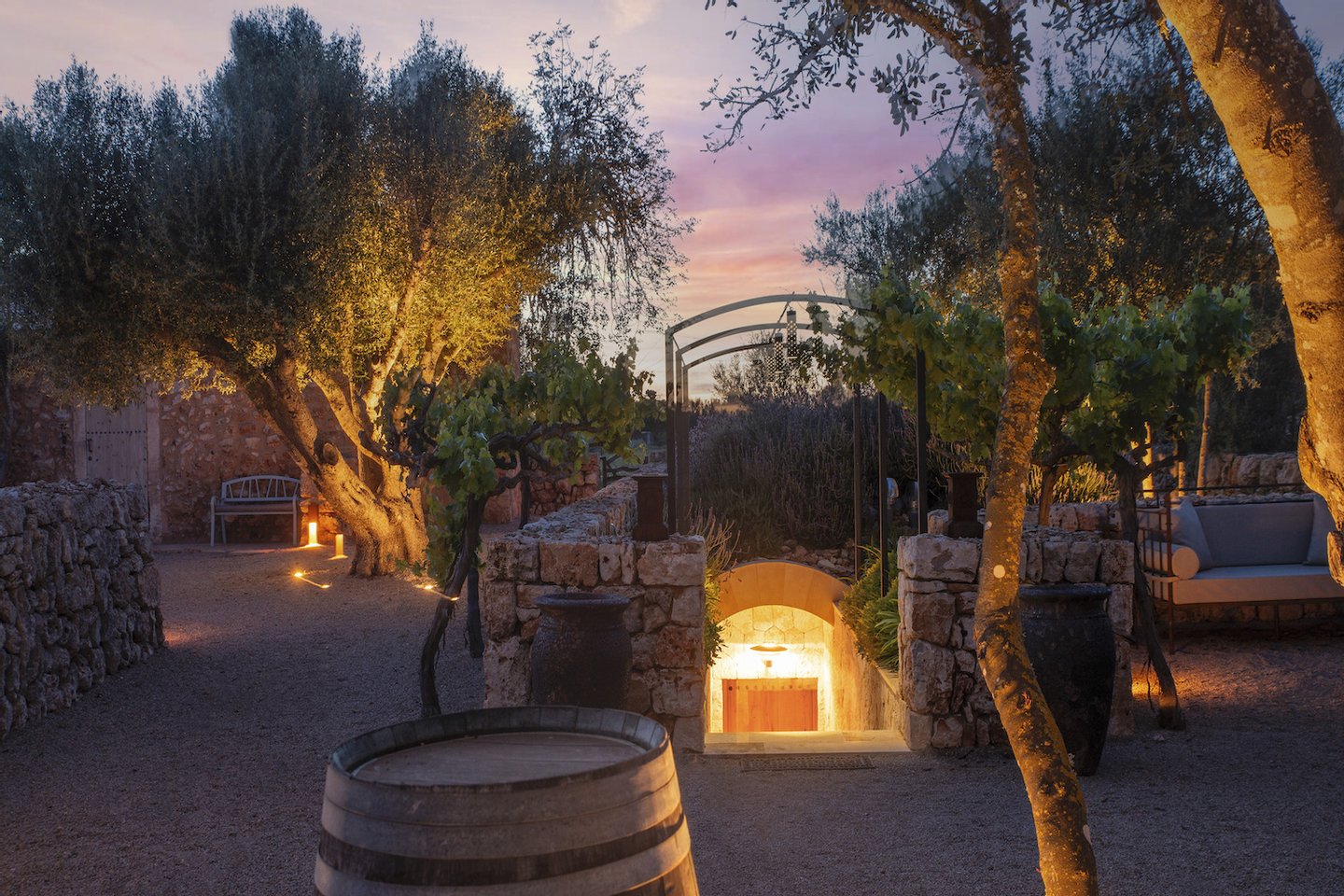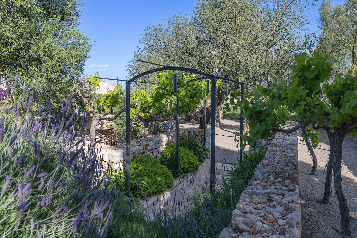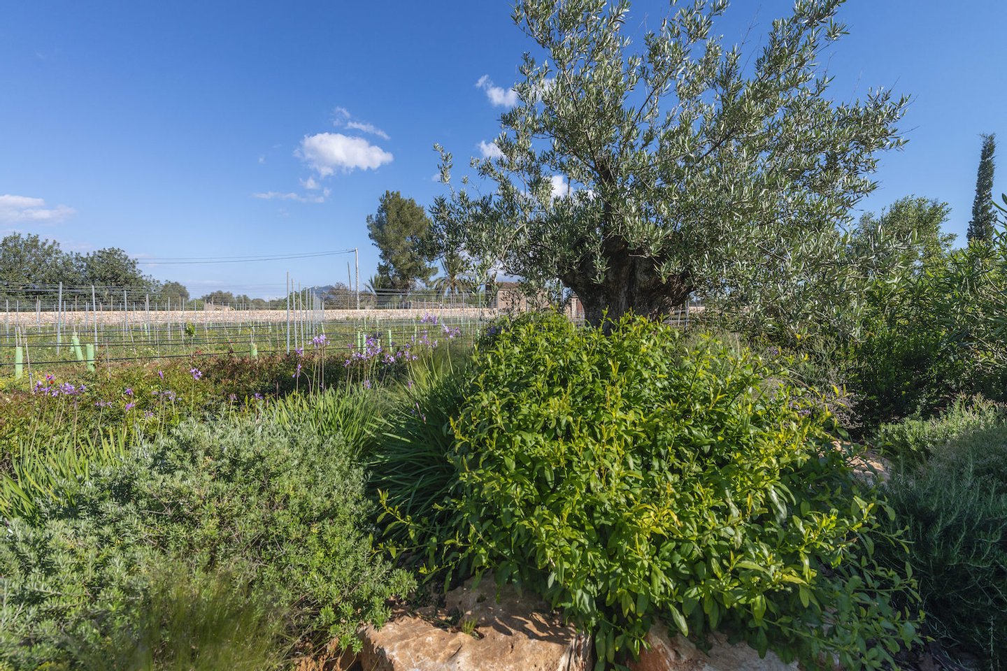In privilegierter, ruhiger Lage zwischen Felanitx und Porreres liegt dieses außergewöhnliche Anwesen, das luxuriöses Wohnen mit mallorquinischer Natur und hoher Privatsphäre verbindet. Das rund 70.000 m² große Grundstück umfasst einen eigenen Olivenhain mit ca. 1.300 Bäumen sowie einen gepflegten Weinberg mit etwa 5.100 Reben und bietet ein eindrucksvolles, authentisches Landschaftsbild.