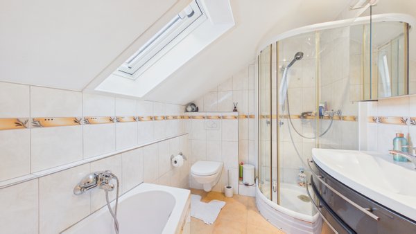 Diese charmante und modernisierte 3,5‑Zimmer‑Wohnung befindet sich im Dachgeschoss eines gepflegten Zweifamilienhauses mit insgesamt 3 Wohneinheiten und einem separaten Hauseingang. Mit einer Wohnfläche von ca. 92 m² sowie einer großzügigen Garage mit ca. 29 m² bietet dieses Zuhause viel Platz, Komfort und ein angenehmes Wohngefühl – ideal für Paare oder kleine Familien.