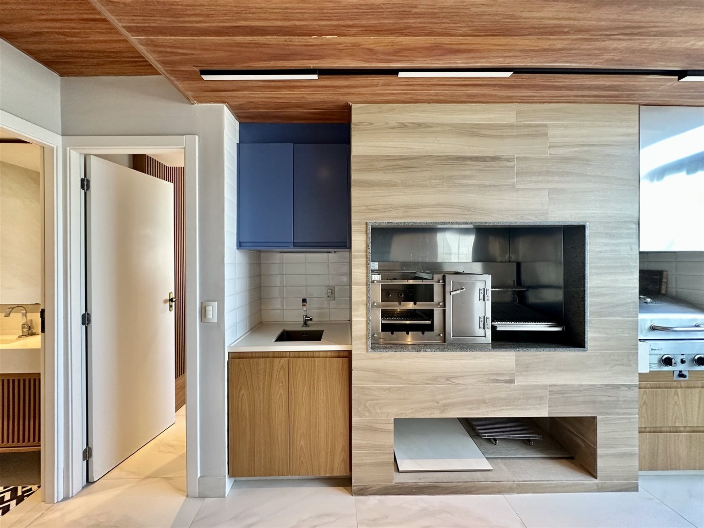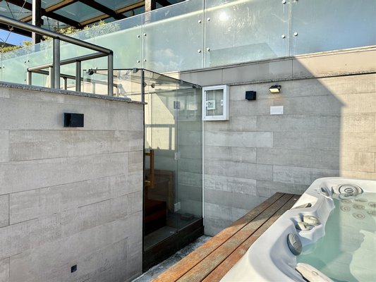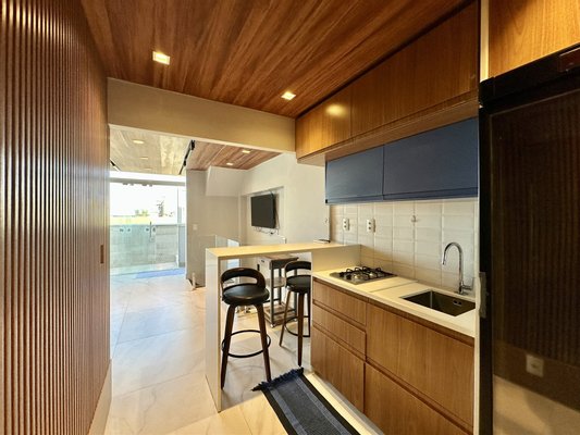 Der Sozialbereich verfügt über ein integriertes Wohnzimmer, ein elektrisch verstellbares Schlafsofa, einen 65-Zoll-Fernseher und einen Esstisch, was eine funktionale und einladende Umgebung schafft. Im Erdgeschoss befindet sich ein Doppelzimmer, ein Gästebad, ein Balkon, eine offene amerikanische Küche und ein Waschraum. Im ersten Stock bietet die Master-Suite mit Ankleidebereich ein Übungsbett mit Massagefunktion sowie einenIndoor-Grill (Holzkohle oder Gas), ausgestattet mit Dunstabzug, Abzugshaube und Weinkeller/Brauerei, ideal für komfortable Gästerundgänge.