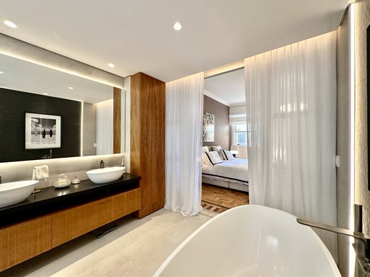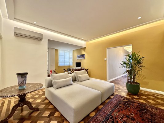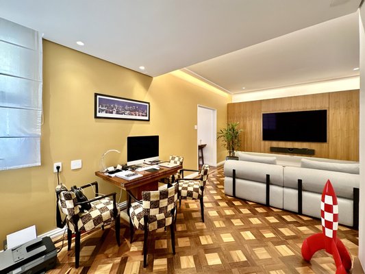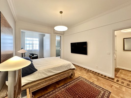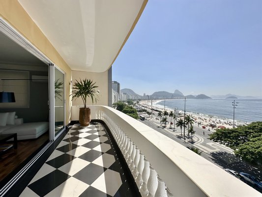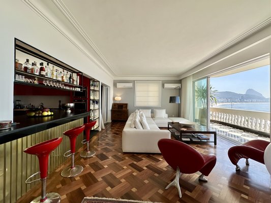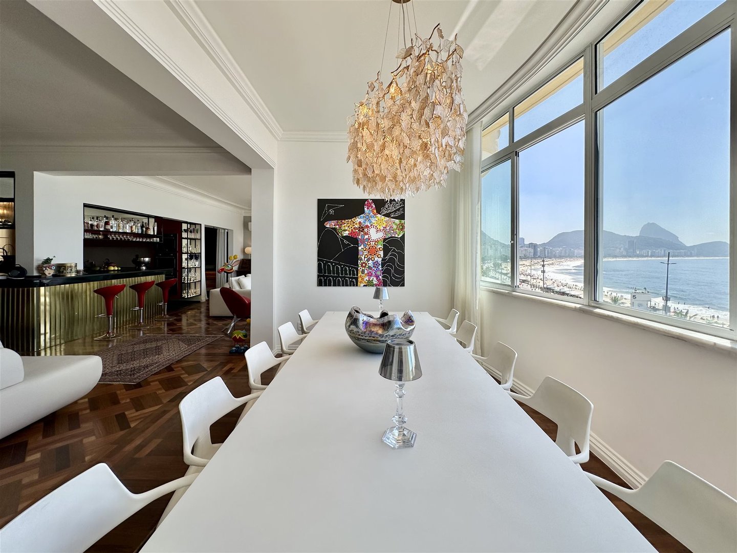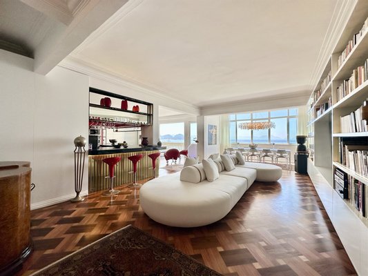 Wohnung mit Seeblick an der Avenida Atlântica, Posten Nr. 5, mit Panoramablick auf die Copacabana-Uferpromenade und die Bucht, inklusive dem Zuckerhut. Vollständig renoviert, mit umfassender Modernisierung der elektrischen und hydraulischen Anlagen; Die Immobilie umfasst 341 m² IPTU und ca. 400 m² gemäß der Eigentümergemeinschaftsvereinbarung. Das Dekor verbindet zeitgenössische Elemente mit Art-Déco-Referenzen und ergibt ein integriertes, funktionales Projekt in luxuriorem Design.