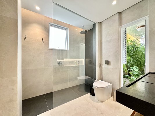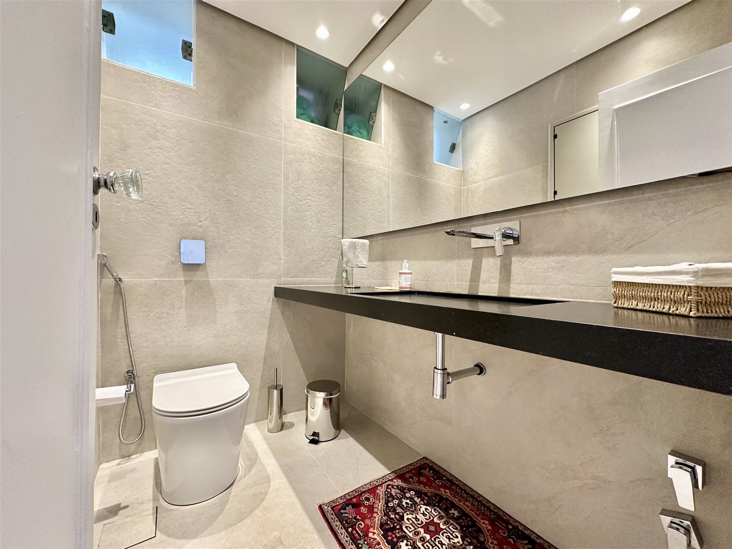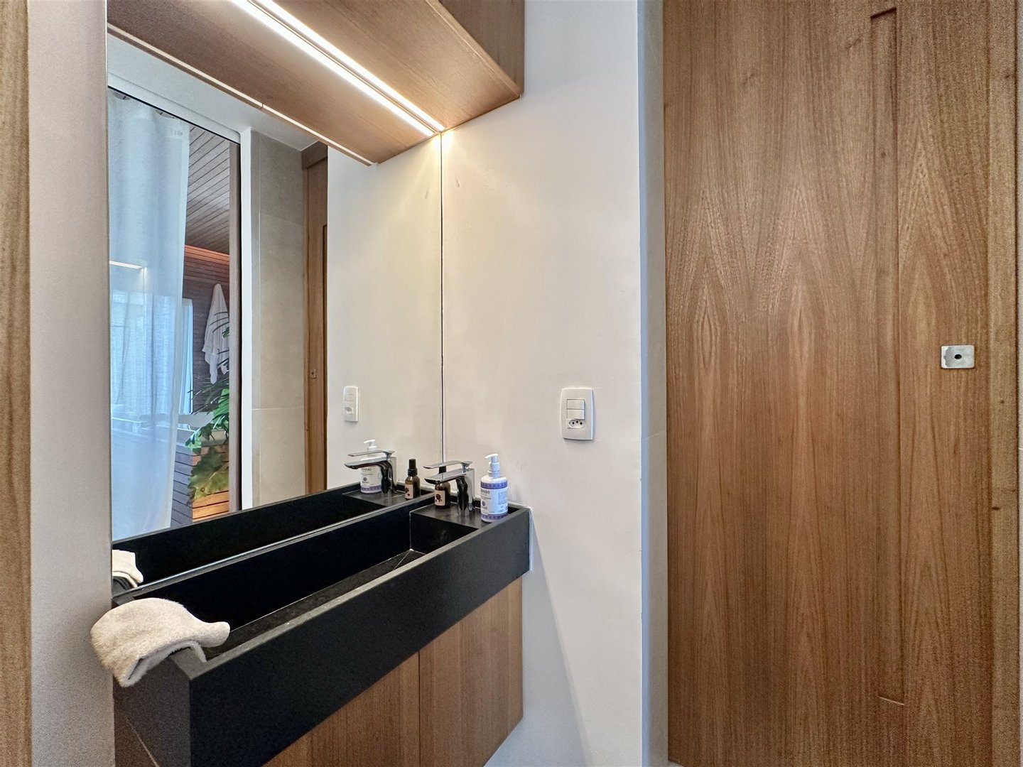 Der Sozialbereich besteht aus einem großen Wohnraum, der in drei Bereiche unterteilt ist, integriert mit einer zentralen Küche mit direktem Meerblick, vollständig ausgestattet und zum Empfang konzipiert. Der Raum verfügt außerdem über einen Vorderbalkon, einen privaten Spa-Bereich mit Jacuzzi aus Ipê-Holz, ein Gesellschaftsbad, eine Toilette und einen ausreichend dimensionierten Servicebereich. Zwischen dem Sozial- und dem Intimbereich gibt es ein Zwischensalon mit Platz für TV und Büro.