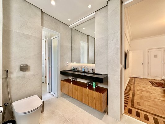 Der intime Bereich verfügt über drei Suiten, die Hauptsuite mit Badewanne, alle mit Zugang zum Rückbalkon, wodurch Ruhe und Komfort gewährleistet sind. Die Räume sind groß und verfügen über geplante Kleiderschränke. Das Gebäude ist traditionell, mit 24-Stunden-Portier, einer Wohnung pro Etage und einem im Grundbuch vermerkten Parkplatz, was Sicherheit und Privatsphäre in einer der begehrtesten Lagen am Ufer von Rio de Janeiro bietet.