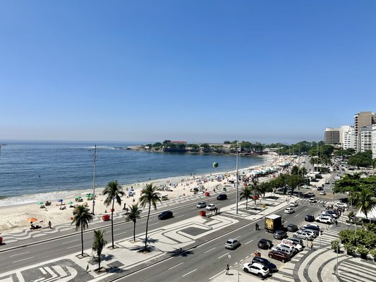 Wohnung mit Seeblick an der Avenida Atlântica, Posten Nr. 5, mit Panoramablick auf die Copacabana-Uferpromenade und die Bucht, inklusive dem Zuckerhut. Vollständig renoviert, mit umfassender Modernisierung der elektrischen und hydraulischen Anlagen;