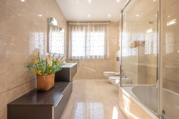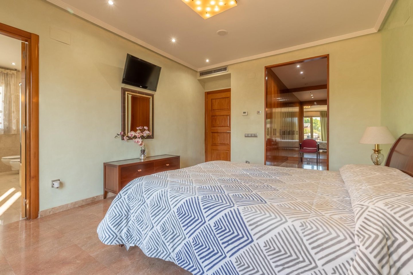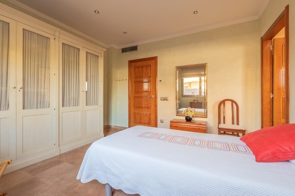 Zwei Suiten, jede mit eigenem Bad; eine davon mit Ankleidezimmer und Zugang zum Balkon.