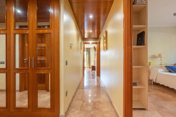 Der Nachtbereich wird durch einen Flur mit Einbauschränken verteilt.