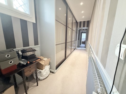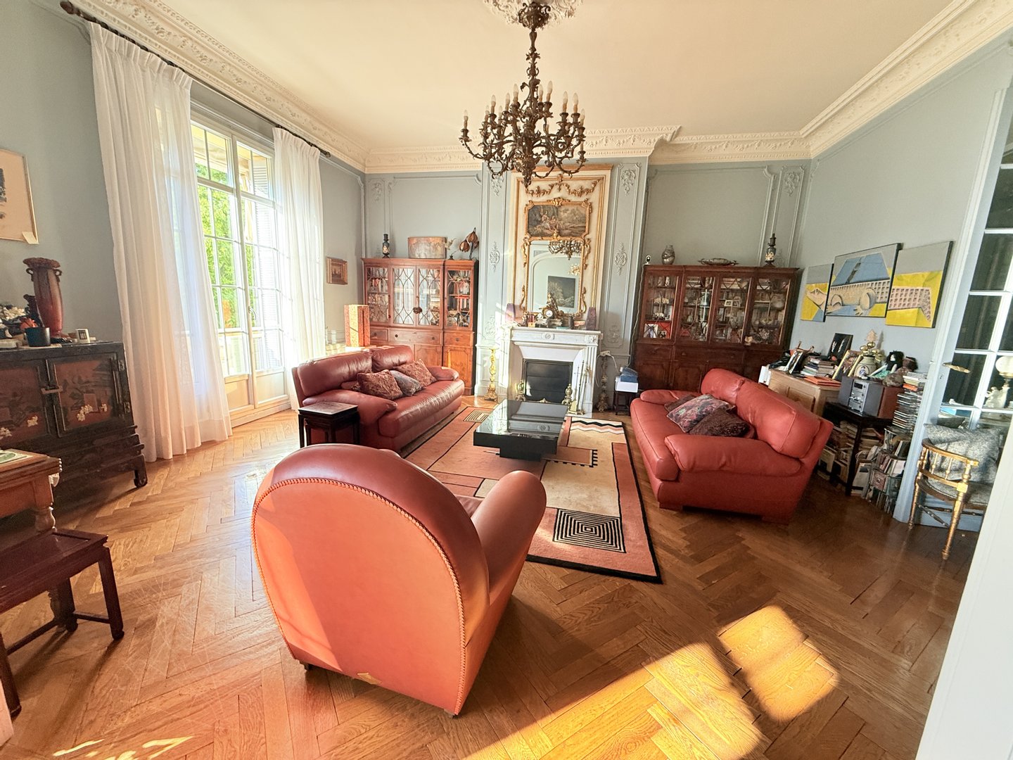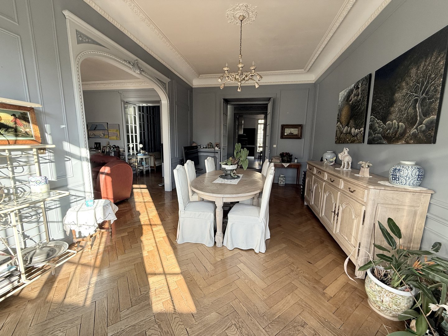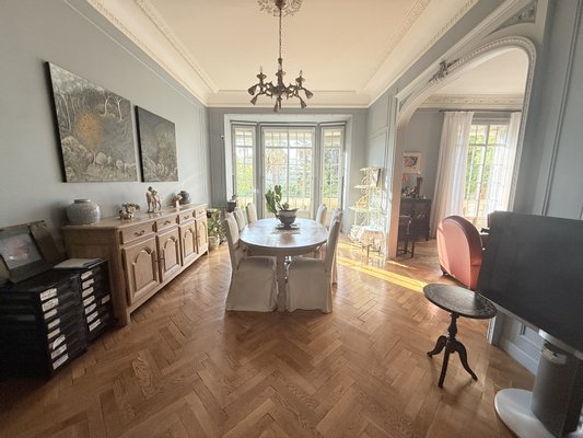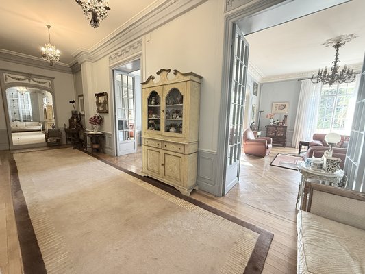 In einem eleganten bürgerlichen Gebäude aus den 1920er Jahren verführt diese prestigeträchtige Wohnung von 224,82 m² sofort mit ihren großzügigen Volumina, ihrer Deckenhöhe von etwa 3,5 Metern und der Verfeinerung ihrer architektonischen Elemente aus der Zeit.