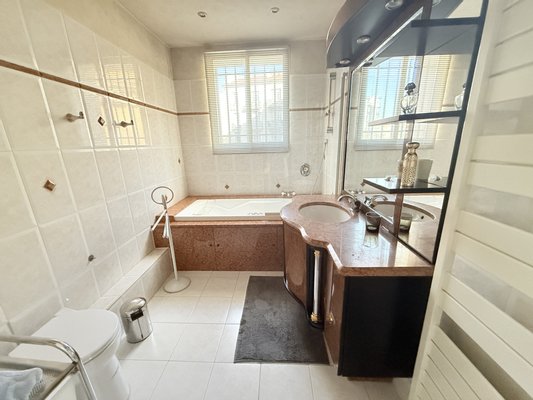 Ein Speisesaal erweitert harmonisch diesen Empfangsbereich und lädt die Gäste ein, in einer warmen und freundlichen Atmosphäre zu unterhalten. Die Zirkulation führt dann zu den anderen Räumen der Wohnung: einer großen, unabhängigen, voll ausgestatteten, funktionalen und hellen Küche sowie drei Hauptschlafzimmern nach Osten, die ein sanftes Morgenlicht genießen. Die Wohnung verfügt außerdem über ein Badezimmer, einen Duschraum mit Toilette, eine Gästetoilette sowie Servicebereiche wie Waschraum, Flure und ausreichend Stauraum.