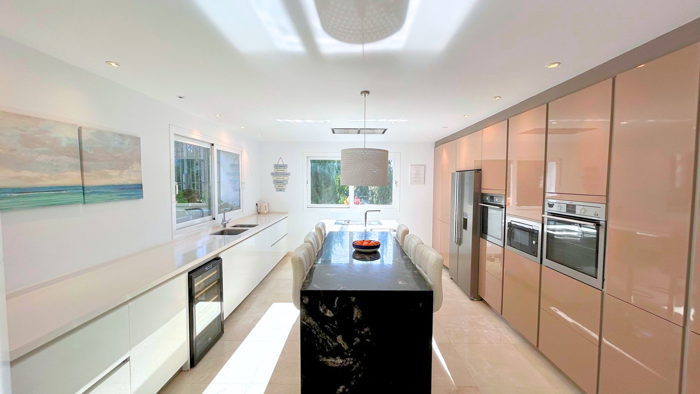 Eine hervorragende Gelegenheit, eine moderne Villa in einem der etabliertesten und sichersten Wohngebiete Marbellas zu erwerben, ideal nur wenige Minuten vom Stadtzentrum und den Stränden Ost-Marbellas entfernt. Es liegt günstig in der Nähe internationaler Schulen, Golfplätze, Tennisclubs, Restaurants, Supermärkte und aller wichtigen Annehmlichkeiten
