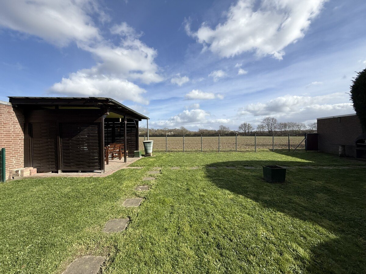 Besonders hervorzuheben ist der großzügige Gemeinschaftsgarten mit freiem Blick ins angrenzende Feld. Dieser bietet neben viel Grün auch einen gemütlichen Pavillon mit Stromanschluss sowie eine Grillecke und lädt somit zu gemeinschaftlicher Nutzung und Erholung im Freien ein.