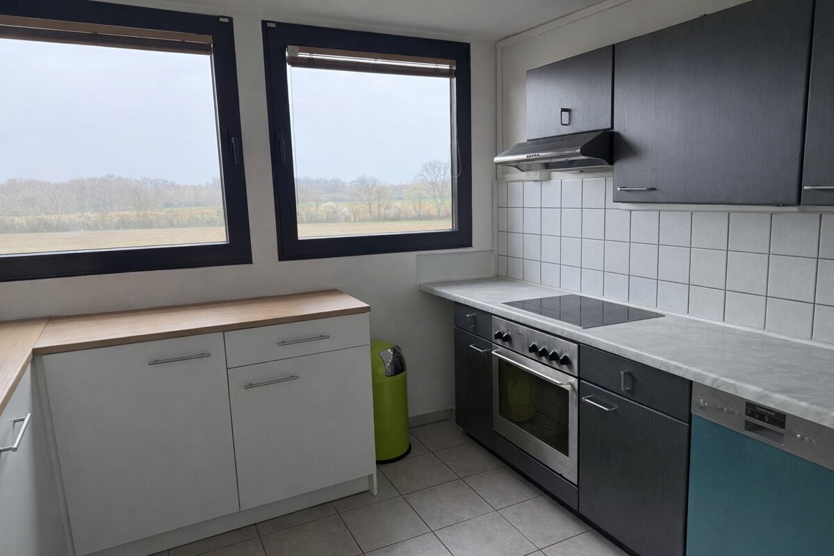 Die Wohnung überzeugt durch eine durchdachte Raumaufteilung auf ca. 64,5 m² Wohnfläche sowie helle, freundlich wirkende Räume. Das Tageslicht-Wannenbad ist klassisch ausgestattet. Im Wohnzimmer ist Parkett verlegt, ansonsten ist die Wohnung mit weiß/grauen Bodenfliesen ausgestattet. Die grözügige Diele verfügt über ausreichend Platz für ein kleines Home-Office. Die Küche bietet einen schönen Weitblick aufs Feld und die Gelegenheit für eine gemütliche Sitzecke. Ein weiteres Zimmer bietet sich ideal als Kinderzimmer oder Büro an.