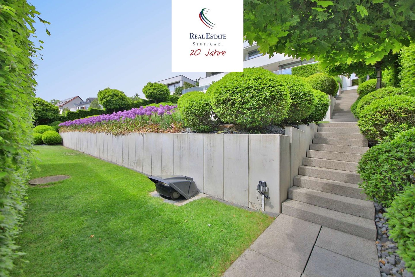 Das Grundstück selbst ist ein Rückzugsort von seltener Qualität. Der großzügige Garten mit gepflegten Grünflächen, stilvollen Terrassenbereichen und blühender Bepflanzung schafft eine private Oase über den Dächern der Stadt. Hier verbinden sich Sonne, Ruhe und Panorama zu einem Lebensgefühl, das jeden Tag aufs Neue begeistert. Ob entspanntes Frühstück im Freien, ein stilvoller Empfang oder ein stiller Abend mit Blick in die Weite – dieses Anwesen bietet den perfekten Rahmen für besondere Momente.