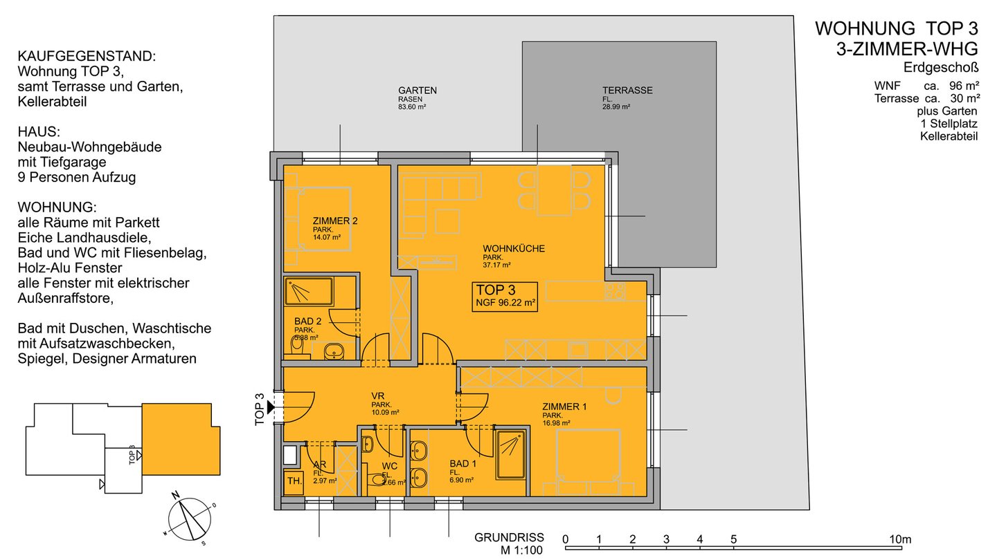 - Top 3 (EG) ca. 96 m² WNF, 2 Schlafzimmer, 2 Badezimmer € 1.990.000,-