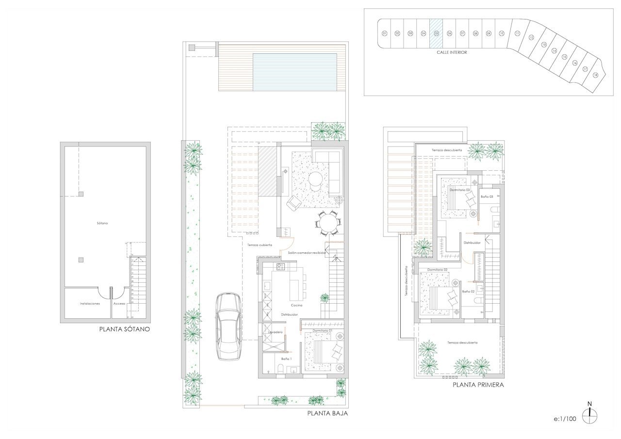 Hier entstehen 18 luxuriöse Villen in modernem Design mit 3 Schlafzimmern, 2 Bädern, einem 68 m² großen, lichtdurchfluteten Keller, einem privaten Pool und Terrassen. Diese Villen sind ideal, um den mediterranen Lebensstil zu genießen, und bieten eine unvergleichliche Kombination aus Luxus, Komfort und einer privilegierten Lage, komplett mit privatem Garten und Parkplätzen auf dem Grundstück.
