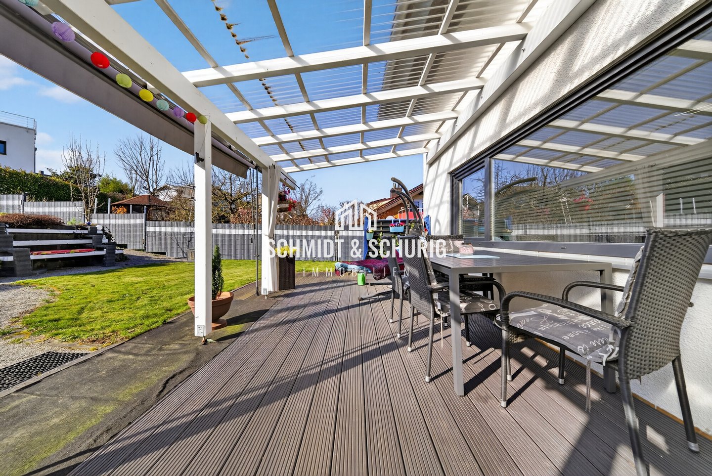 Der Außenbereich mit überdachter Terrasse bietet einen geschützten Platz zum Verweilen. Die solide Ausstattung und die gewachsene Wohnlage machen diese Immobilie zu einem attraktiven Angebot für Käufer, die Raum, Funktionalität und Wohnqualität schätzen.