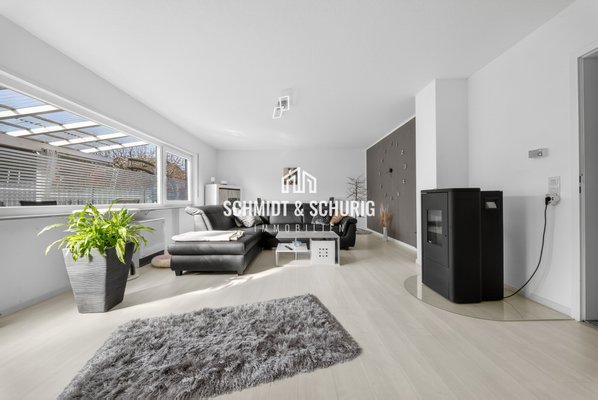 Die durchdachte Raumaufteilung umfasst 7 Zimmer, darunter 4 Schlafzimmer, 2 Bäder und ein Gäste-WC, und ermöglicht flexible Nutzungskonzepte – vom Kinderzimmer über Gästezimmer bis zum Hobbyraum oder Homeoffice. Ein Pelletofen im Wohnzimmer und Erdgeschoss sorgen für behagliche Wärme.