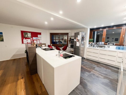 Das Haus, erbaut im Jahr 1983, erstreckt sich über drei Etagen und bietet mit seinen sieben Zimmern ausreichend Platz für die ganze Familie. Im Erdgeschoss finden Sie einen großzügige Wohn- und Essbereich mit einem offenen Karmin, der zu gemütlichen Abenden einlädt. Die offene und helle Küche wird durch eine geräumige Speisekammer im Erdgeschoss ergänzt. Das großzügige Hauptschlafzimmer in der ersten Etage wird ergänzt um ein eigenes Ankleidezimmer sowie ein Badezimmer und ein separates WC. Zudem liegt ein kleines Zimmer auf dieser Etage. In den Etagen darüber befinden sich dann noch drei weitere - teils sehr großzügige - Zimmer, die als Kinderzimmer oder Büro genutzt werden können. Im Dachgeschoss gibt es zudem ein weiteres Badezimmer und einen Raum mit Anschlüssen für eine eigene Küche.