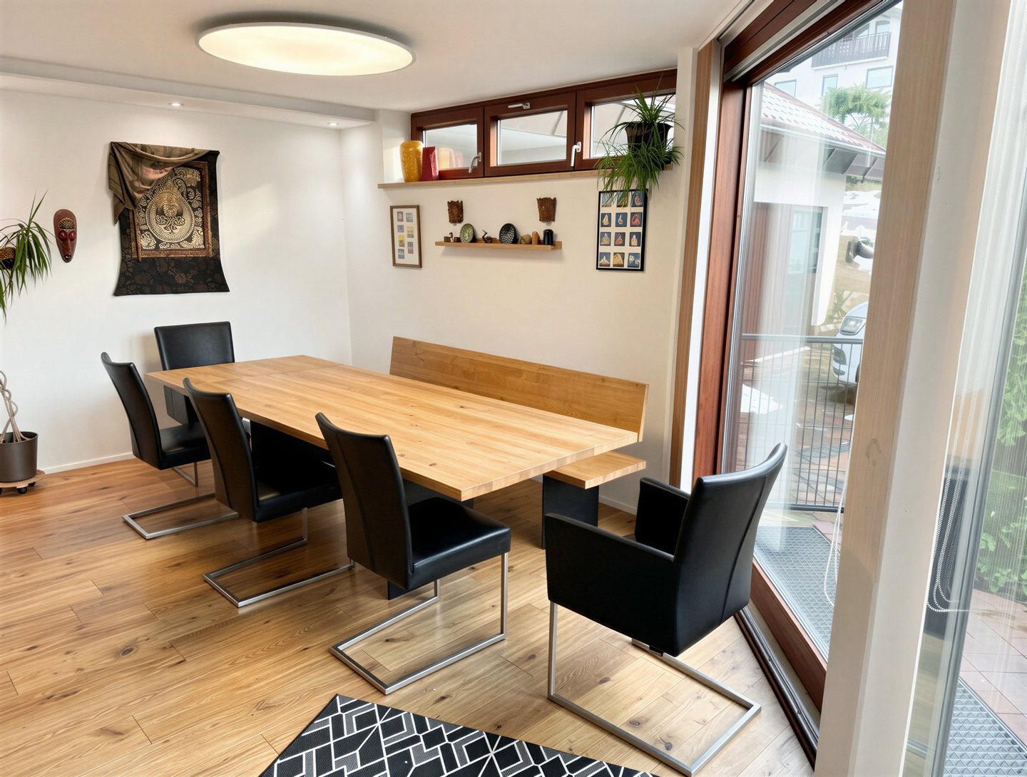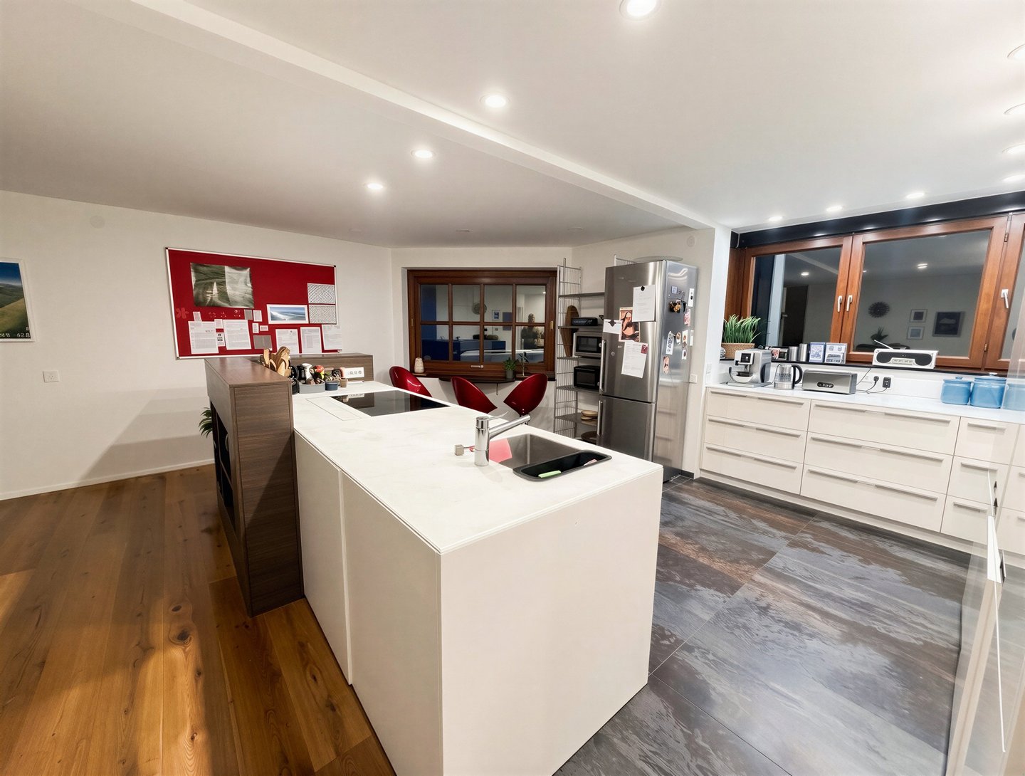 Die hochwertige Innenausstattung umfasst Parkett- und Fliesenböden, die sowohl ästhetisch ansprechend als auch pflegeleicht sind.