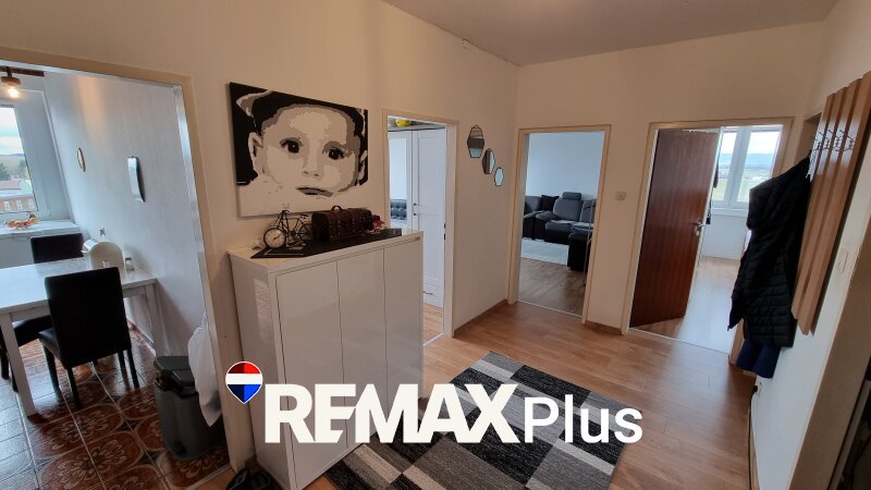 Über den Vorraum, der zentral zu allen Räumen führt, gelangt man in die verschiedenen Bereiche der Wohnung. Von hier aus erreichen Sie die Küche, die möbliert ist und über einen Essplatz verfügt. Das Wohnzimmer bietet ausreichend Platz für eine gemütliche Wohnlandschaft und überzeugt durch den direkten Zugang zur Loggia, die zu angenehmen und entspannten Stunden einlädt.