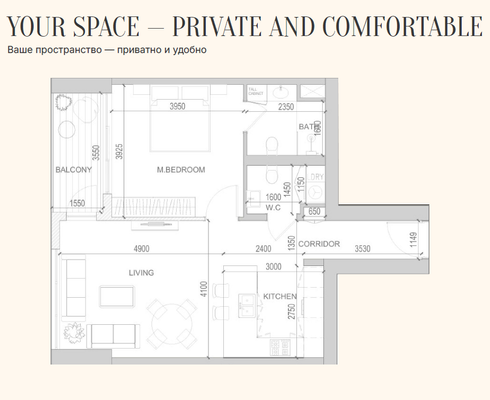 Willkommen in einer geräumigen 1-Zimmer-Wohnung, die für Familien und Investoren konzipiert wurde. Mit ihrem großen Grundriss bietet diese Wohnung reichlich Platz für Entspannung und Unterhaltung. Das geräumige Wohnzimmer ist ideal, um Zeit mit der