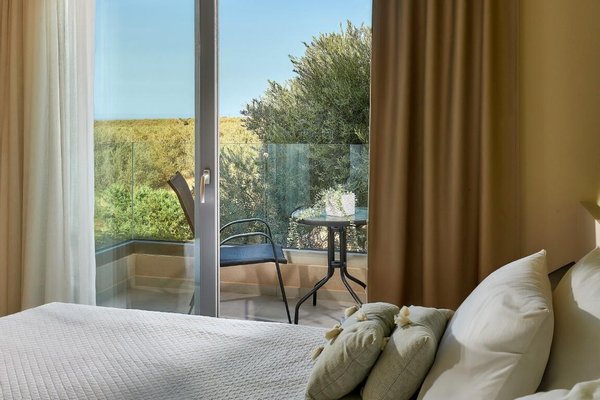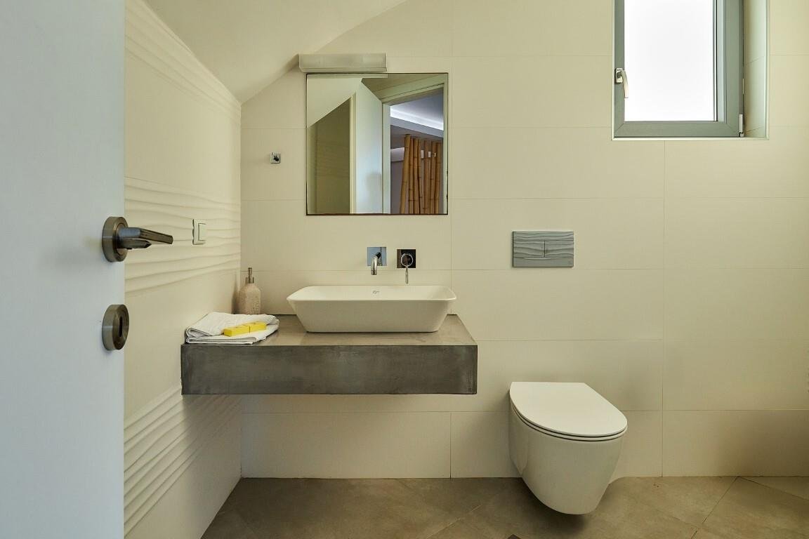 Im ersten Stock befinden sich zwei Schlafzimmer mit Zugang zu einem großen Balkon, der einen schönen Blick auf die umliegenden Olivenhaine, Berge und das Meer bietet, sowie zwei Badezimmer.
