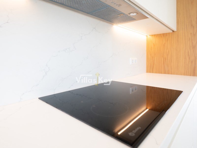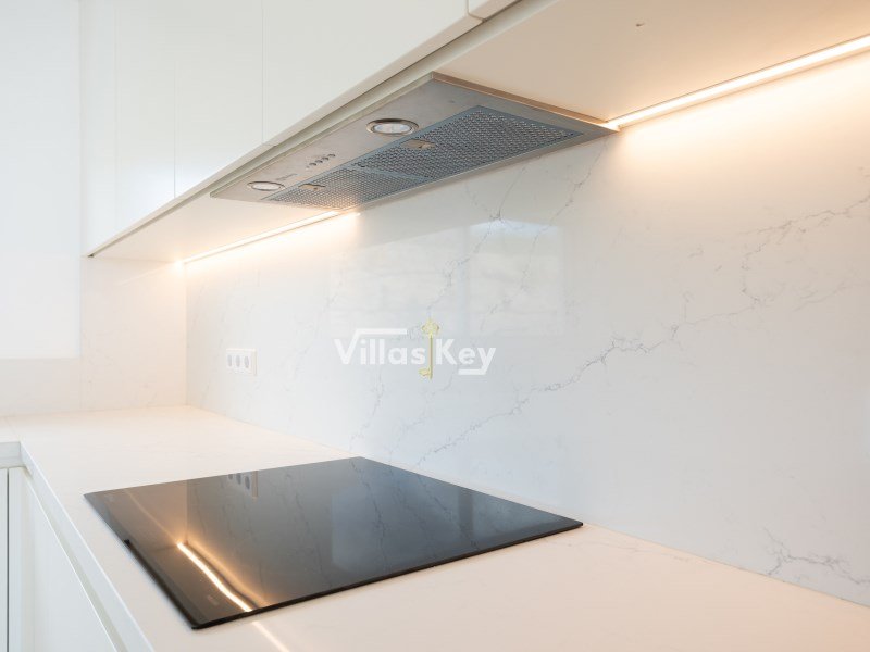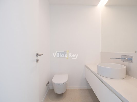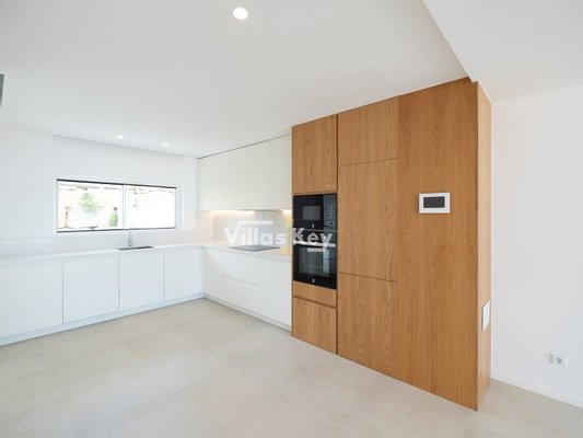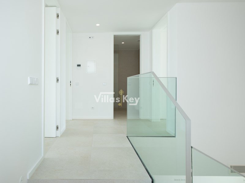 Beim Betreten durch die Haupttür werden Sie von einem großzügigen Wohnzimmer im Open-Space-Konzept begrüßt, das harmonisch in eine moderne Designerküche integriert ist. Das Interieur setzt auf edle Materialien und hochwertige Oberflächen, wobei die Treppen in Eichentönen und die mit eleganten Silestone-Arbeitsplatten ausgestattete Küche hervorstechen. Die Funktionalität des Erdgeschosses wird durch ein Gäste-WC und einen direkten internen Zugang zur Garage ergänzt. Der Kontakt zur Natur ist allgegenwärtig, dank des direkten Zugangs zu einem Rasengarten auf der Rückseite, der absolute Privatsphäre für Familienmomente und einen fließenden Übergang zwischen Innen und Außen bietet.