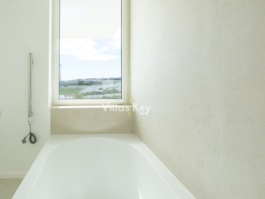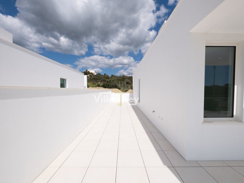 Im ersten Stock offenbart dieses Luxushaus in Lagos den perfekten Rückzugsort mit drei geräumigen Schlafzimmern, darunter eine luxuriöse Master-Suite und ein gut ausgestattetes Gemeinschaftsbad. Das Highlight dieser Etage ist die großzügige Panoramaterrasse, die alle Zimmer des Obergeschosses umschließt. Glasgeländer wurden strategisch gewählt, um eine ununterbrochene visuelle Verbindung zu fördern, den Einfall von natürlichem Licht in allen Räumen zu maximieren und einen freien Blick auf die umliegende Landschaft zu bieten.
