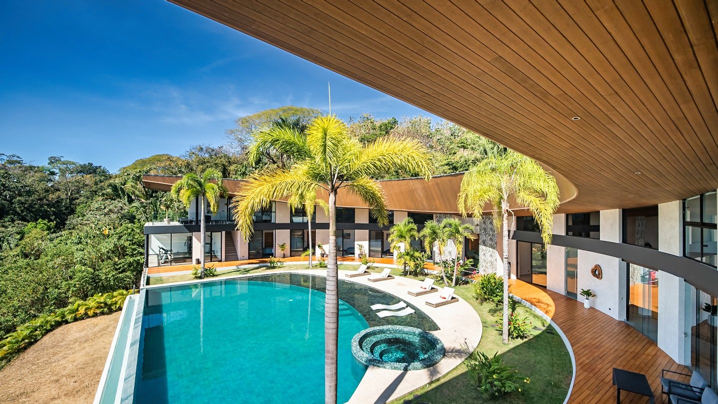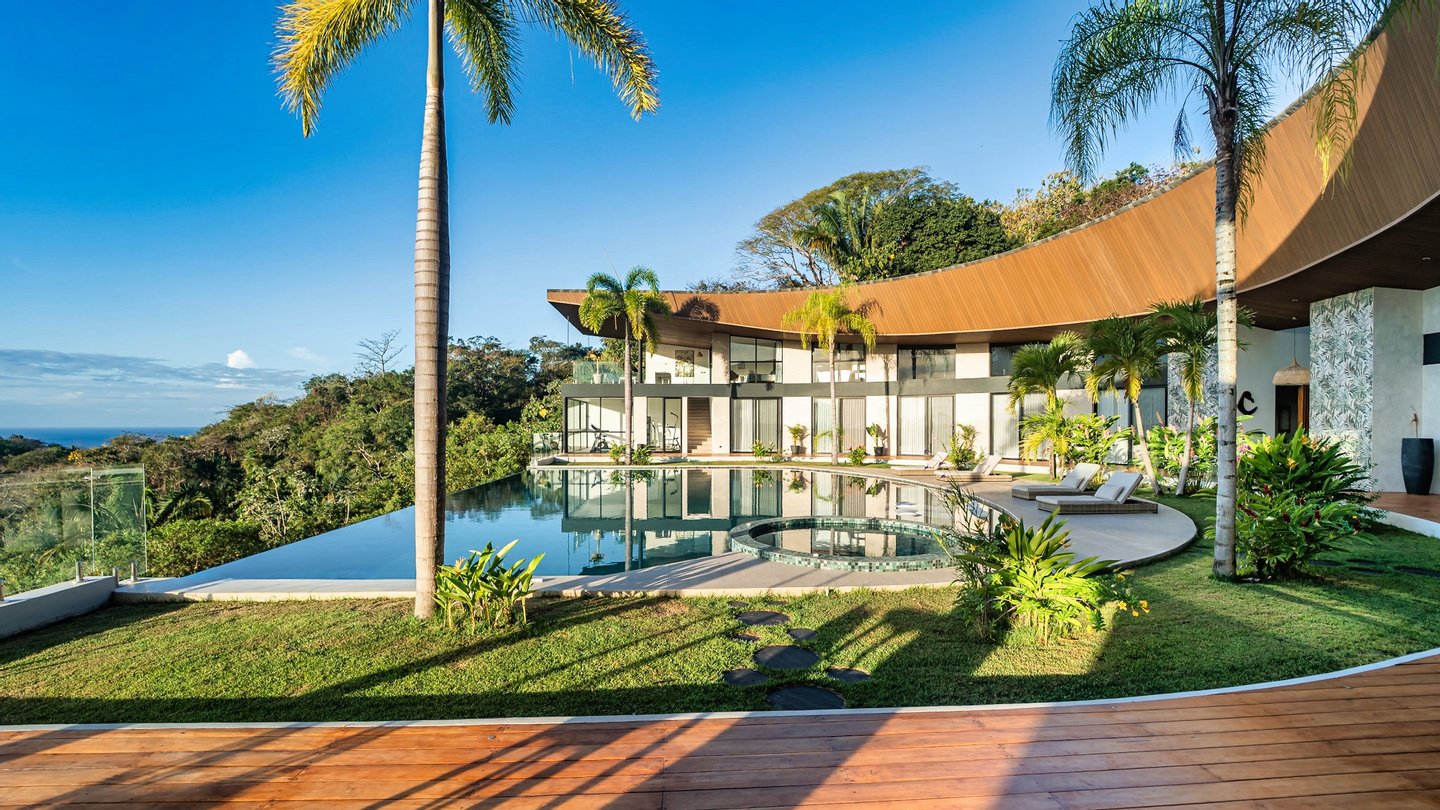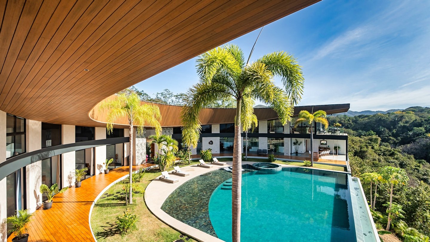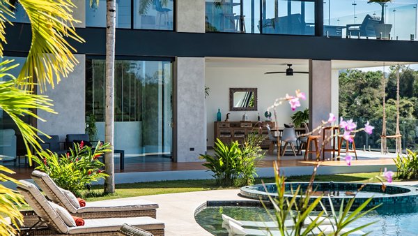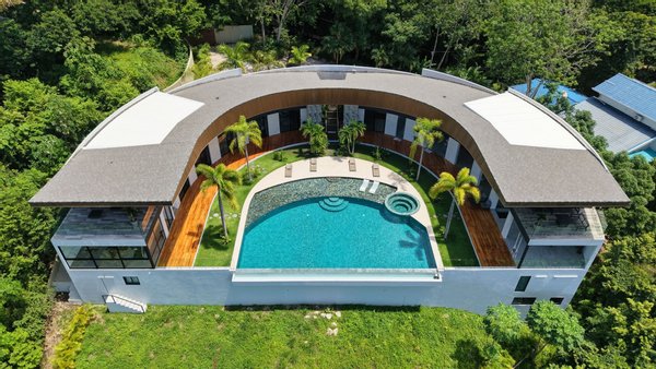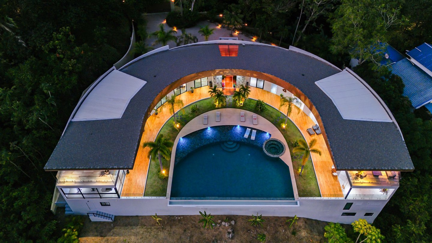 Panoramablicke und unvergleichliche Privatsphäre Auf einer beeindruckenden Höhe bietet das Anwesen eine 180-Grad-Panoramaleinwand mit dem tiefen Azurblau des Pazifischen Ozeans, smaragdgrünen Berggipfeln und dem leuchtenden Blätterdach darunter. Die halbmondförmige Architektur ist nicht nur ästhetisch; Es handelt sich um ein funktionales Meisterwerk, das sicherstellen soll, dass jeder Raum im Haus auf diese atemberaubenden Ausblicke ausgerichtet ist und so eine nahtlose Verbindung zu den Elementen schafft.