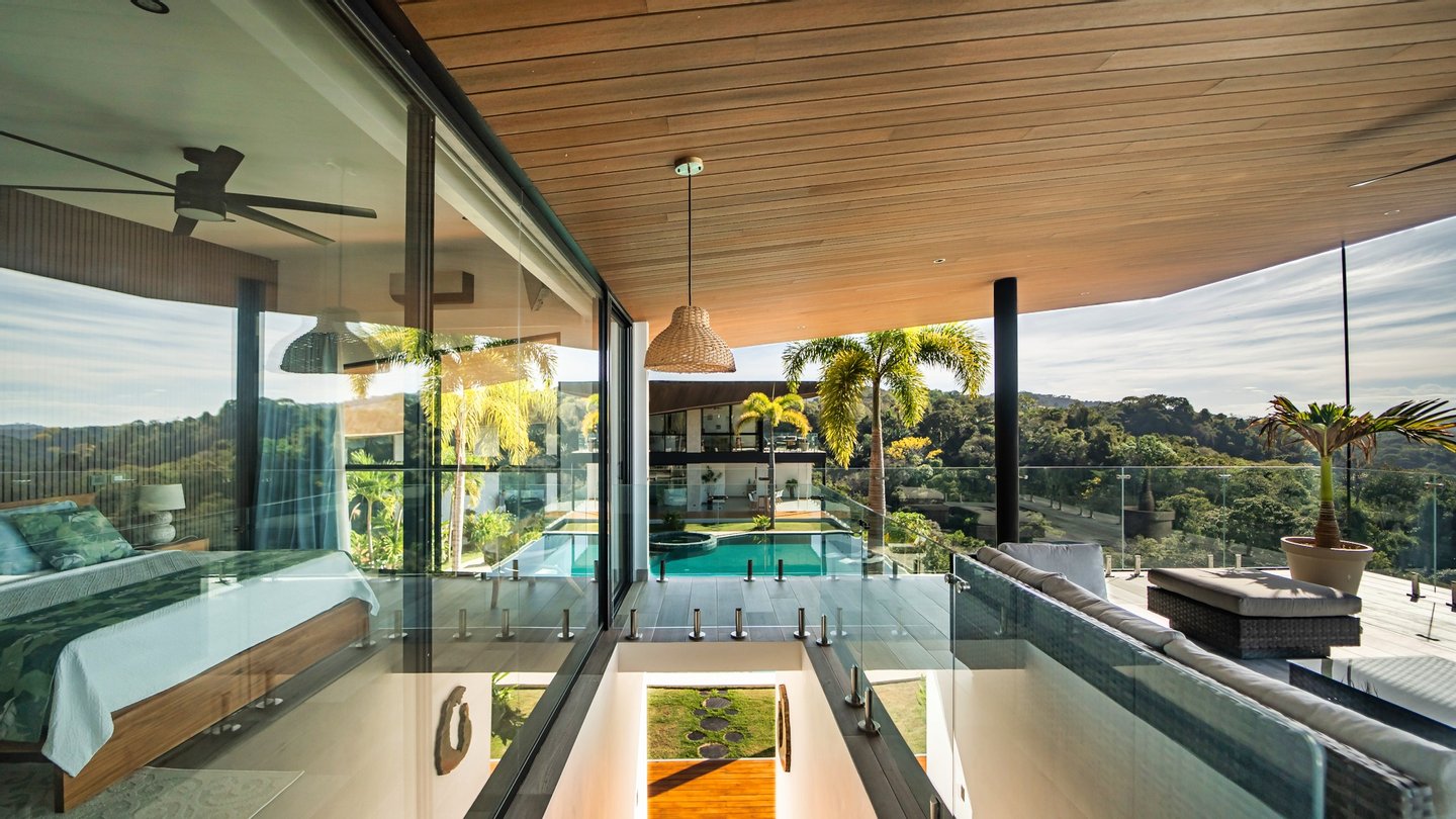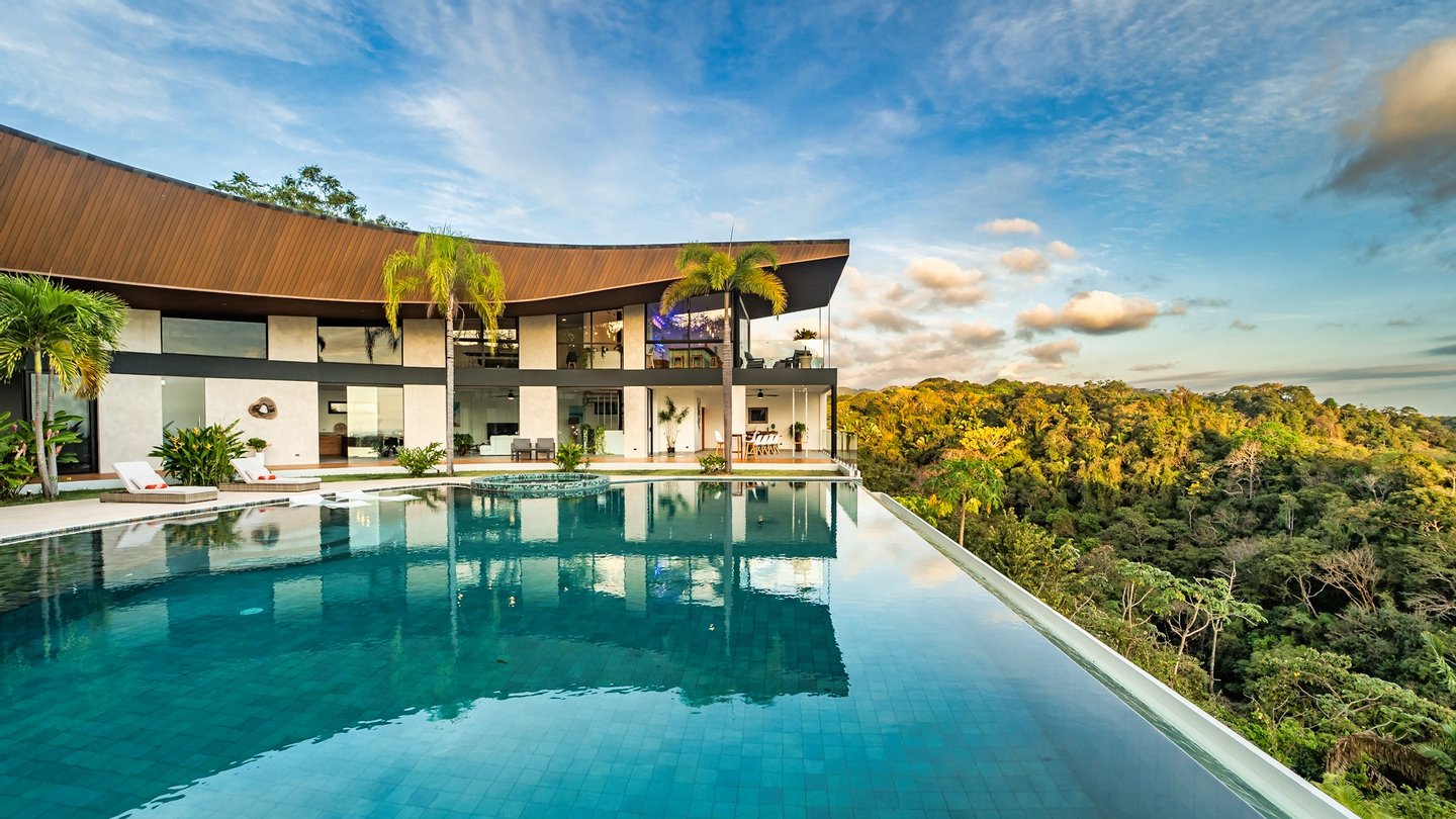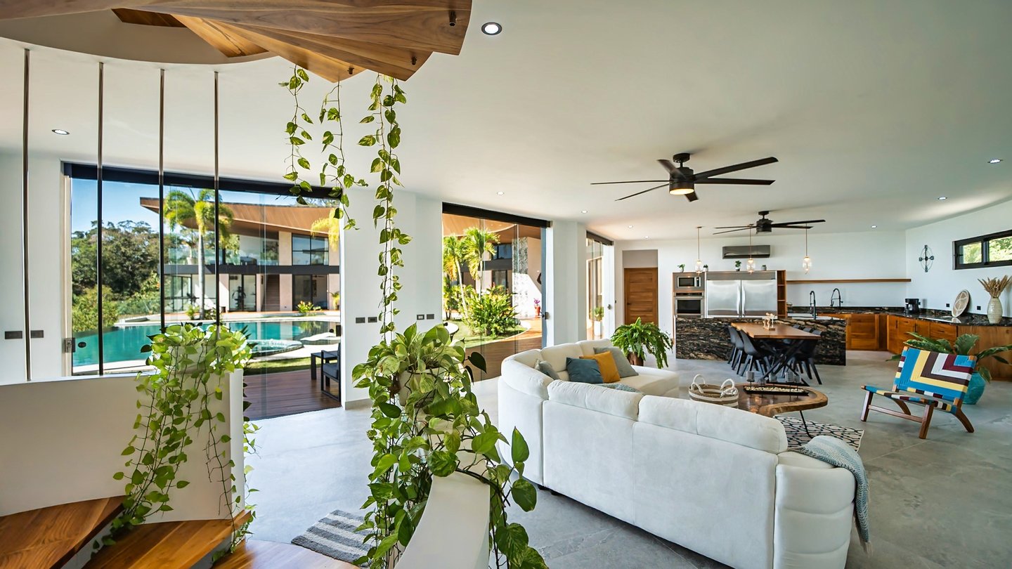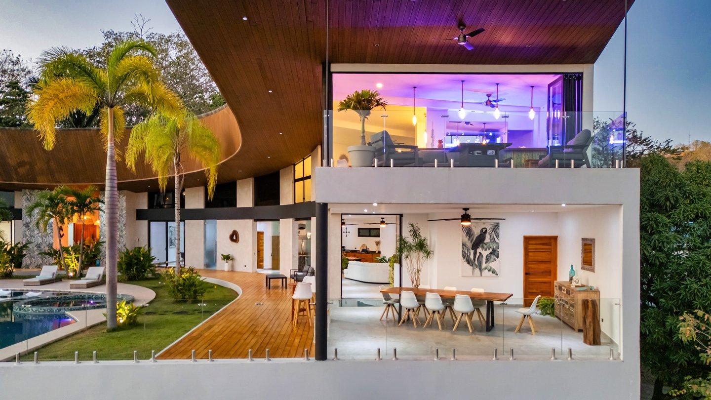 Panoramablicke und unvergleichliche Privatsphäre Auf einer beeindruckenden Höhe bietet das Anwesen eine 180-Grad-Panoramaleinwand mit dem tiefen Azurblau des Pazifischen Ozeans, smaragdgrünen Berggipfeln und dem leuchtenden Blätterdach darunter. Die halbmondförmige Architektur ist nicht nur ästhetisch; Es handelt sich um ein funktionales Meisterwerk, das sicherstellen soll, dass jeder Raum im Haus auf diese atemberaubenden Ausblicke ausgerichtet ist und so eine nahtlose Verbindung zu den Elementen schafft.