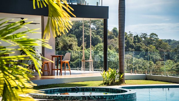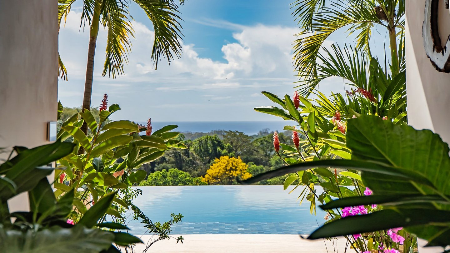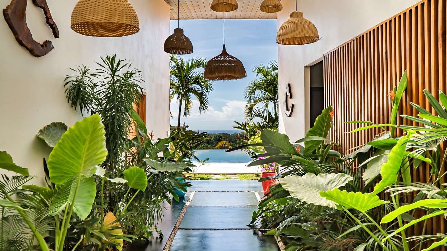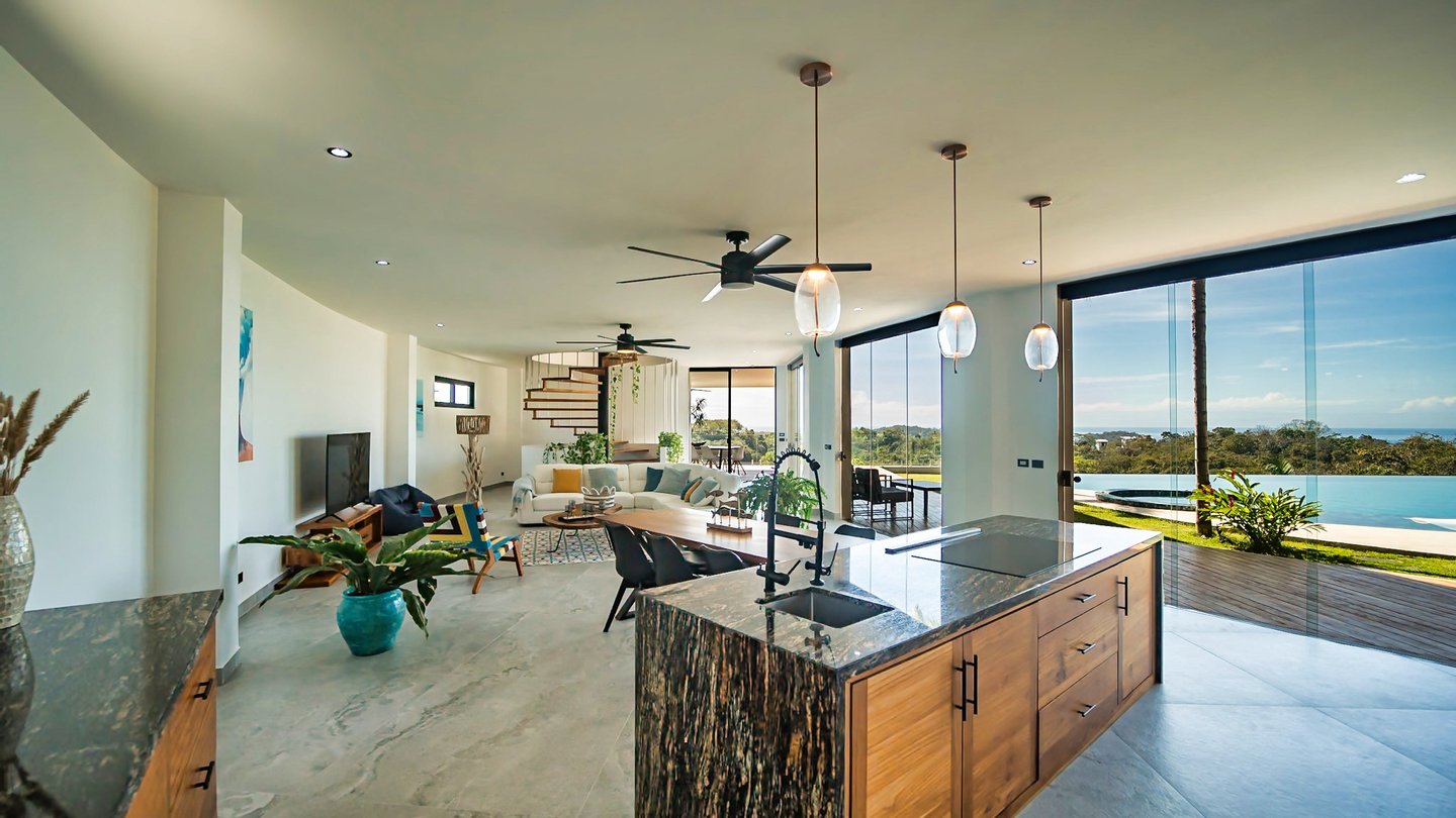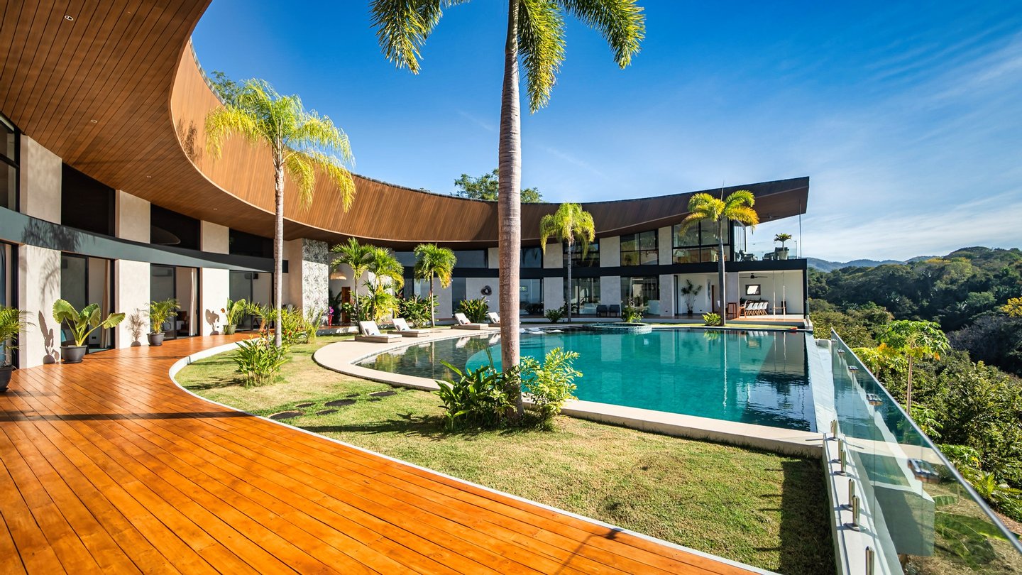 Panoramablicke und unvergleichliche Privatsphäre Auf einer beeindruckenden Höhe bietet das Anwesen eine 180-Grad-Panoramaleinwand mit dem tiefen Azurblau des Pazifischen Ozeans, smaragdgrünen Berggipfeln und dem leuchtenden Blätterdach darunter. Die halbmondförmige Architektur ist nicht nur ästhetisch; Es handelt sich um ein funktionales Meisterwerk, das sicherstellen soll, dass jeder Raum im Haus auf diese atemberaubenden Ausblicke ausgerichtet ist und so eine nahtlose Verbindung zu den Elementen schafft.