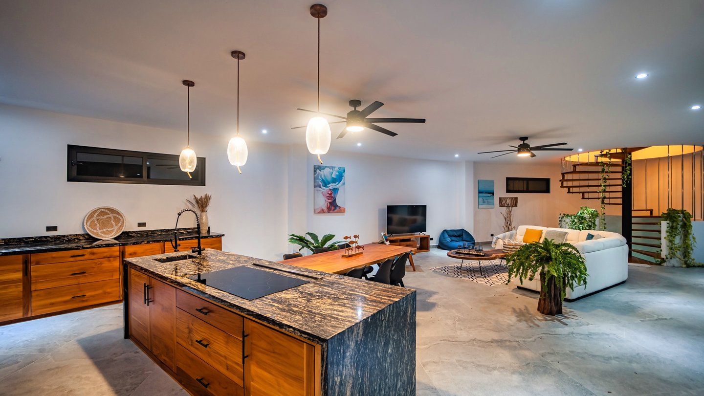 Nachhaltigkeit und technische Exzellenz Wahrer Luxus findet man im inneren Frieden. Sámara Moon ist mit einem privaten Brunnen, fortschrittlicher intelligenter Wasserfilterung und einem automatisierten Bewässerungssystem ausgestattet, um die üppige, tropische Landschaft und ihre 20 Jahre alten Palmen zu erhalten. Das Anwesen verfügt außerdem über getrennte Quartiere für Hausmeister/Haushälterin, um einen tadellosen Service zu gewährleisten und gleichzeitig die Privatsphäre der Hauptwohnung zu gewährleisten.