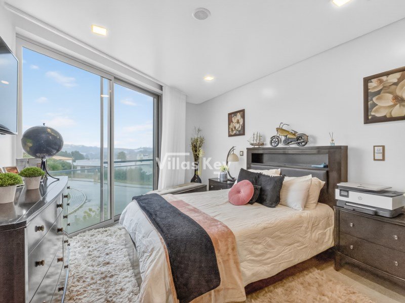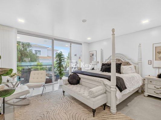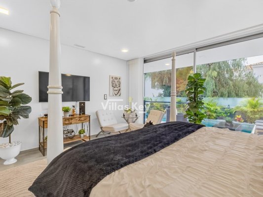 Die vier Schlafzimmer bieten Komfort und Privatsphäre - eines mit Walnuss-Veranda, ein weiteres mit direktem Zugang zum beheizten Salzwasserpool, der mit großen grünen Fliesen und integriertem Wasserfall beeindruckt.
